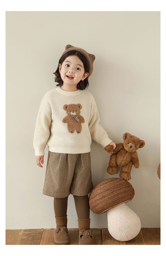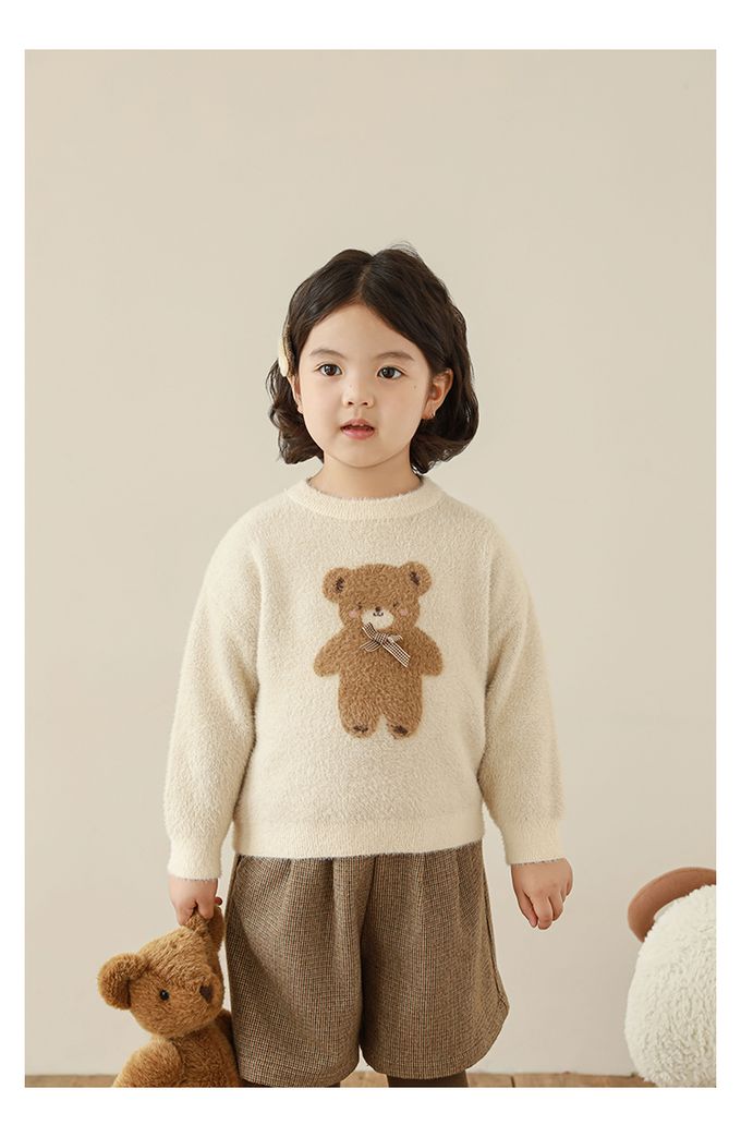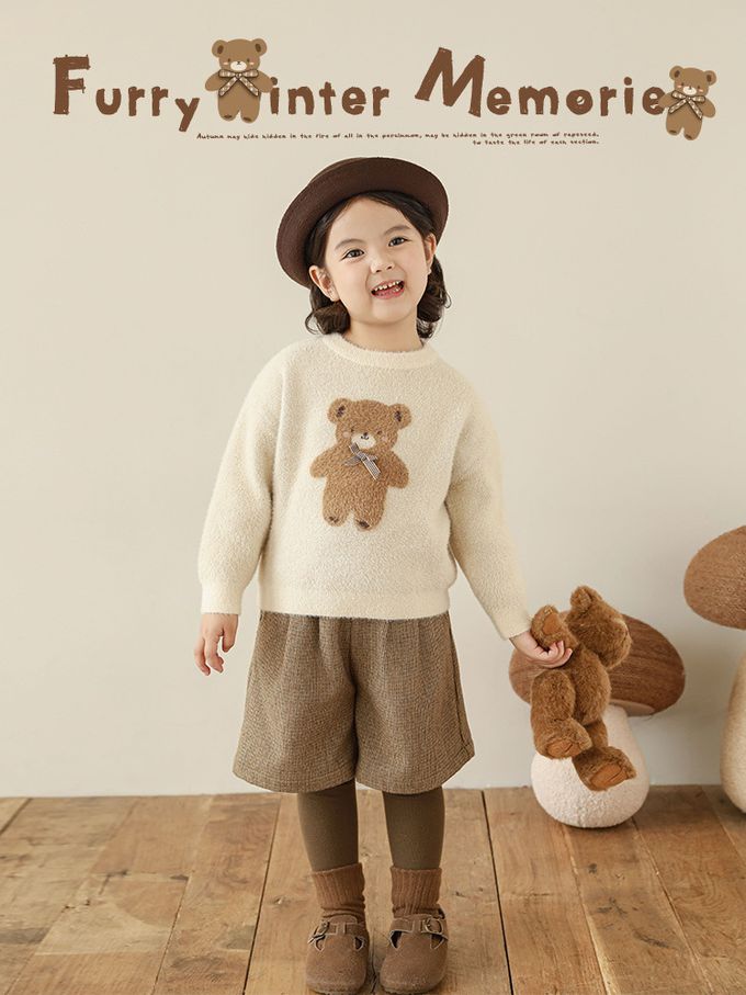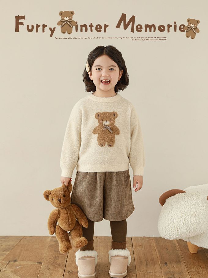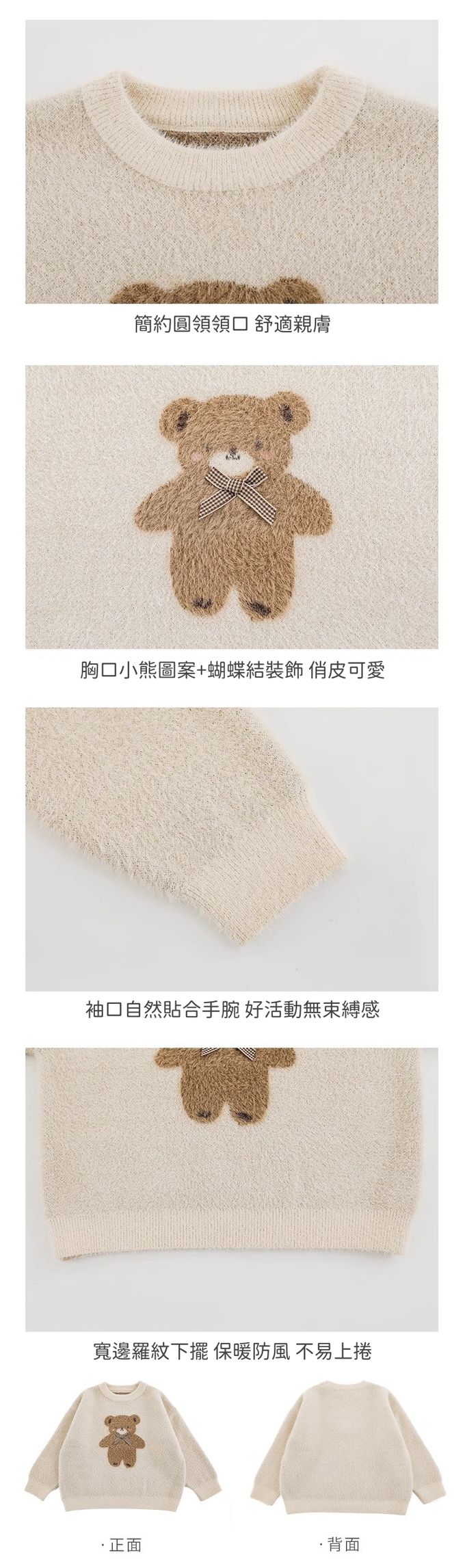 雪花絨長袖針織上衣/毛衣-絨毛熊熊-杏色