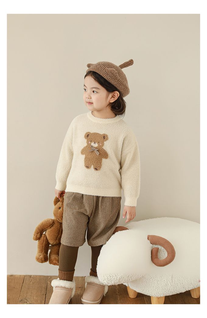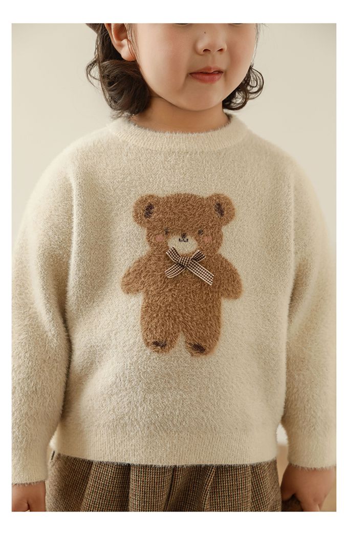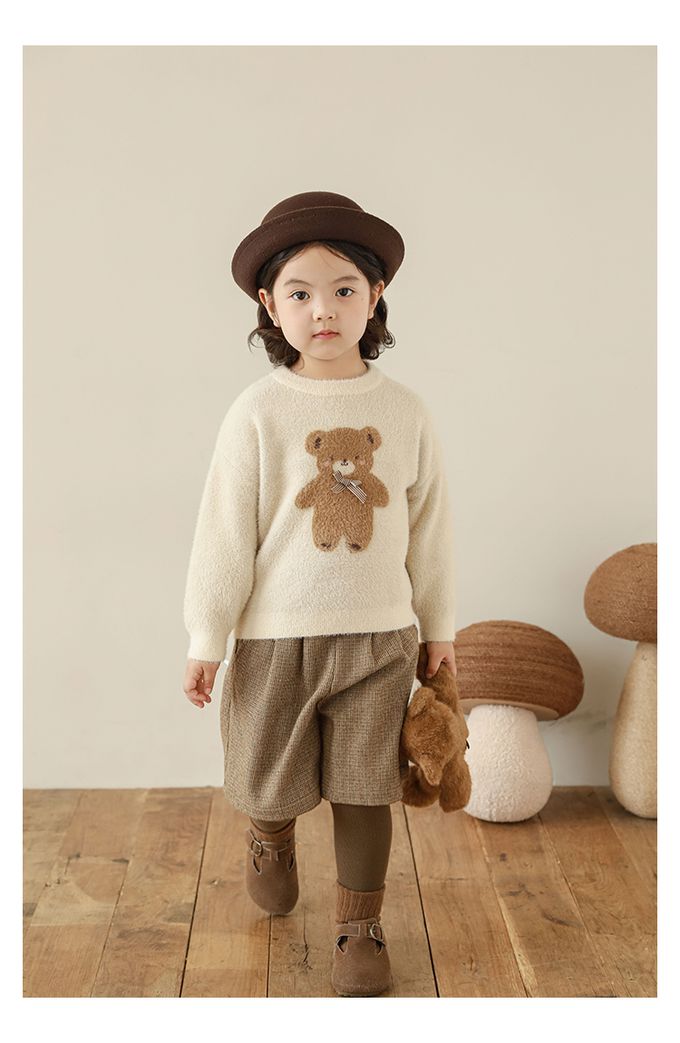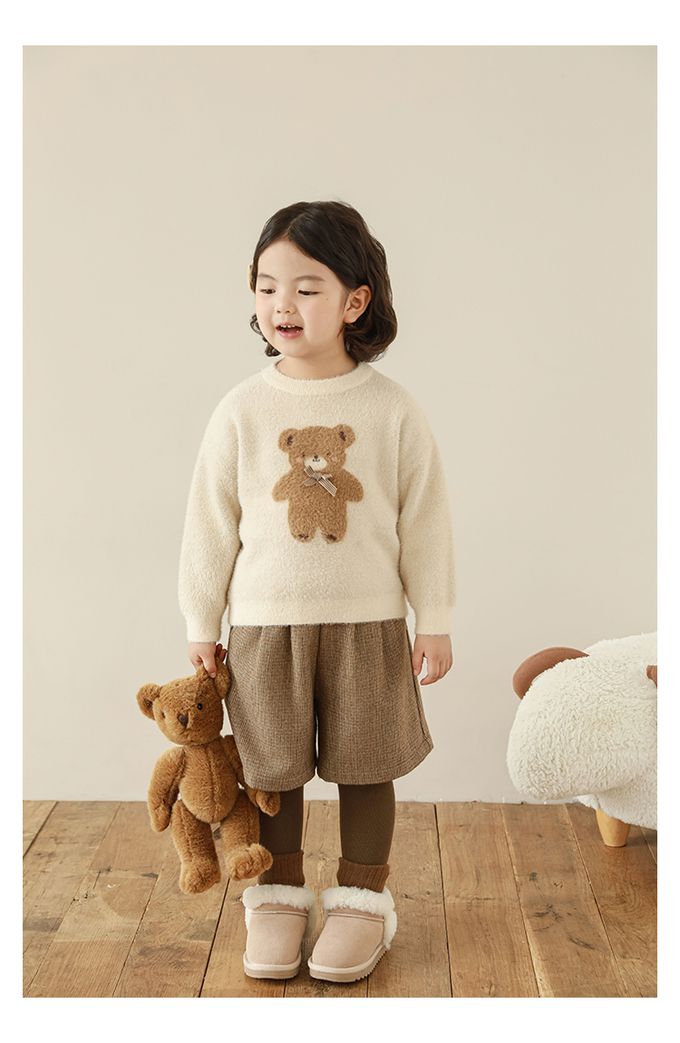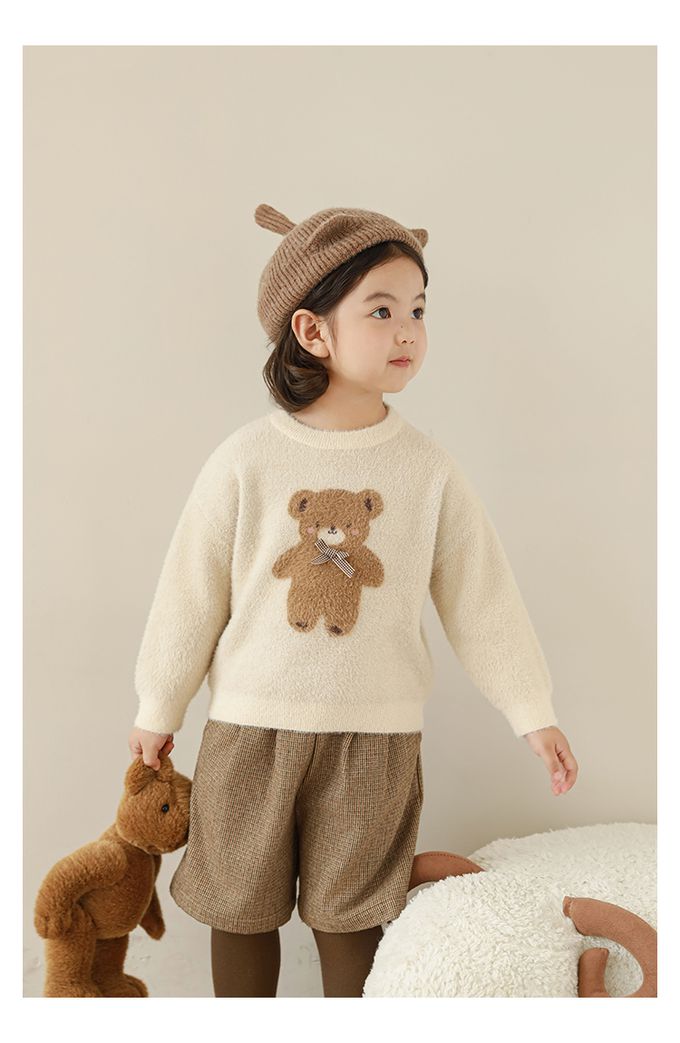 雪花絨長袖針織上衣/毛衣-絨毛熊熊-杏色
