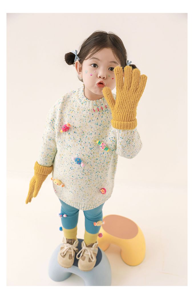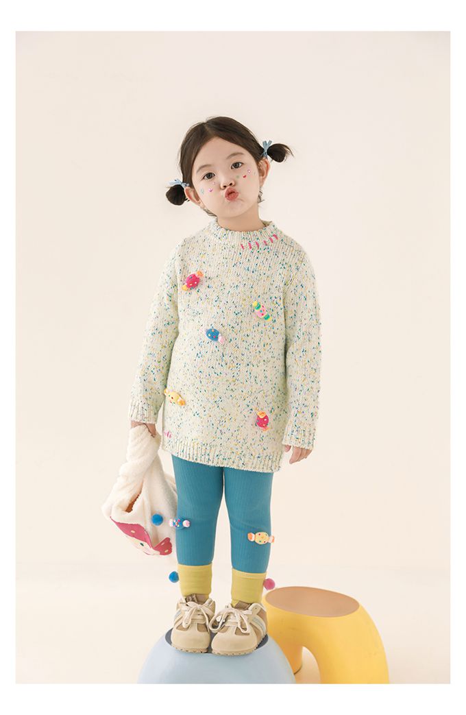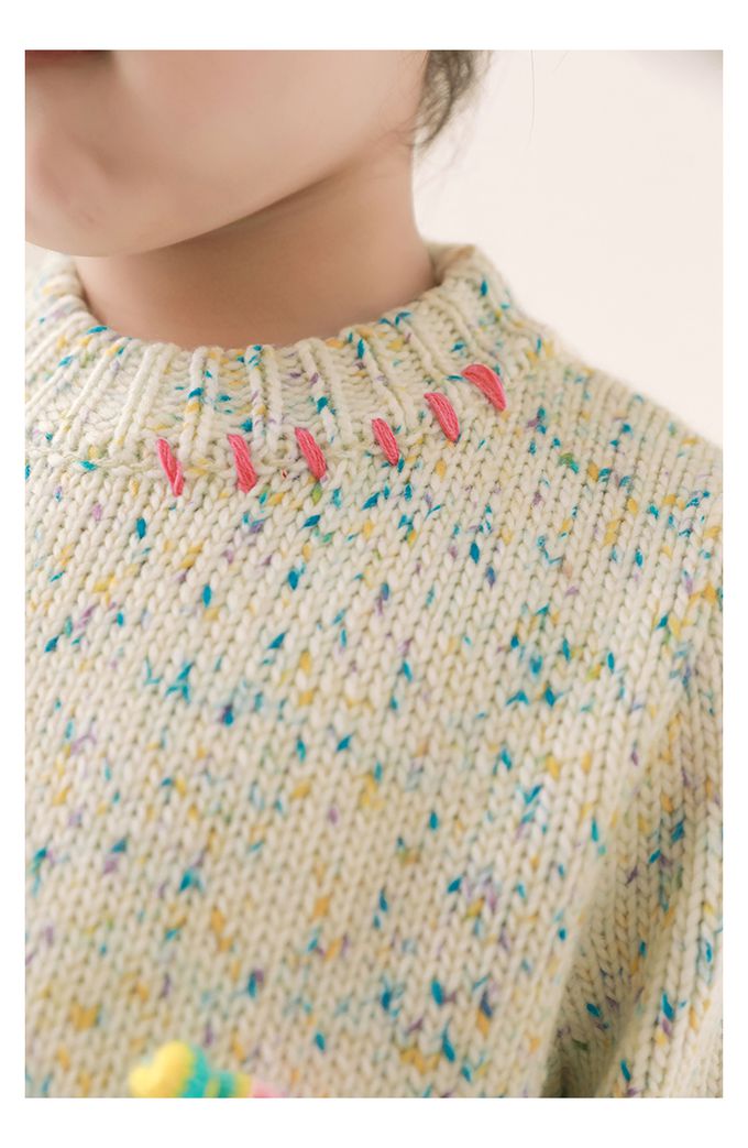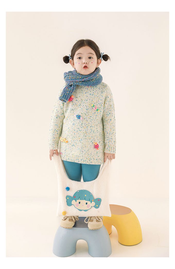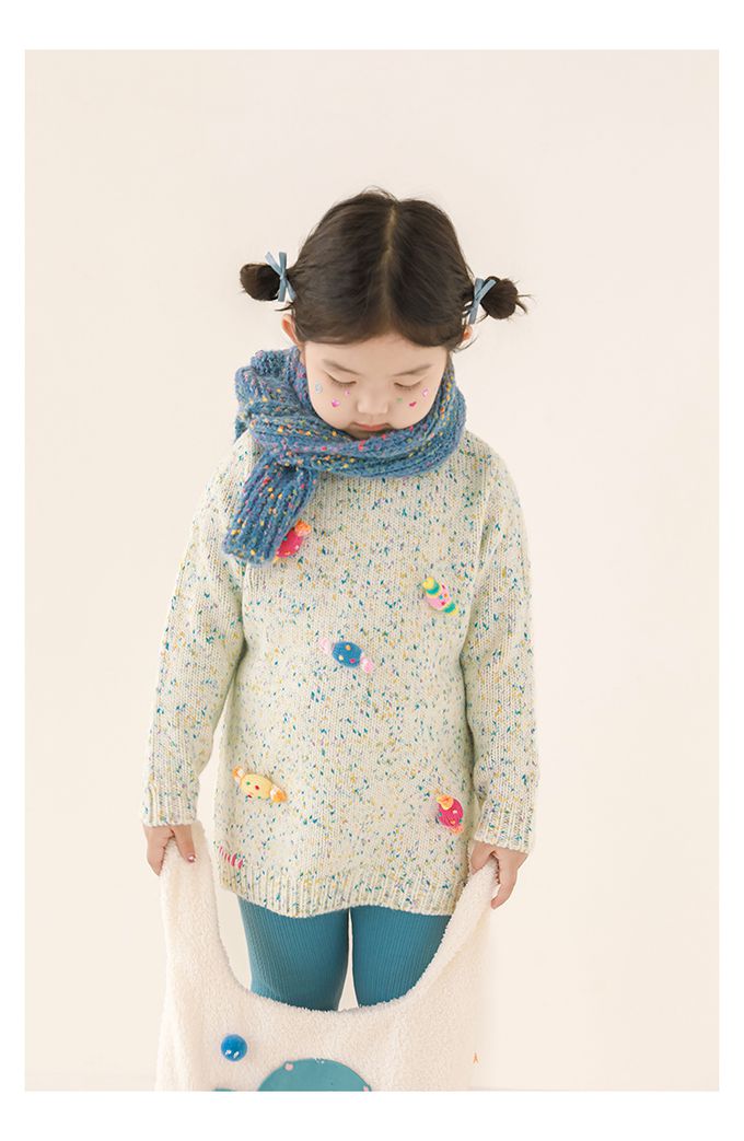 TONGMO - 中長版彩點紗長袖針織上衣/毛衣-立體毛線糖果-藍色