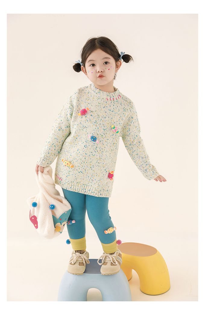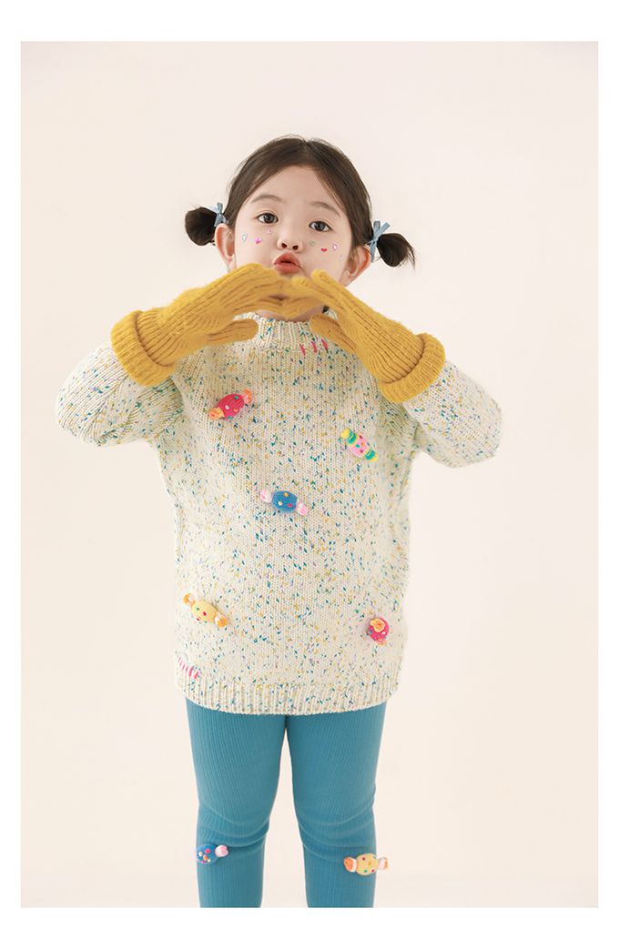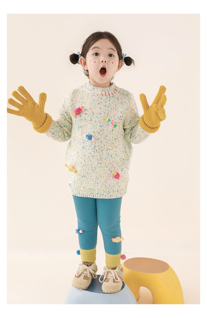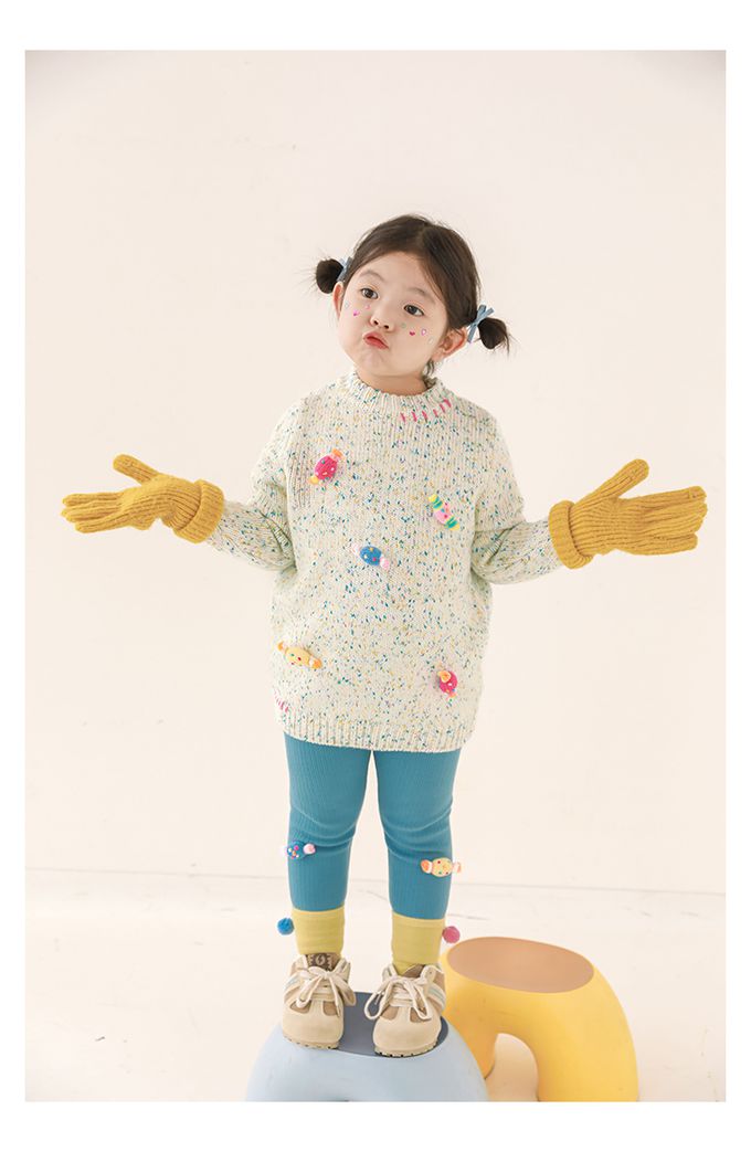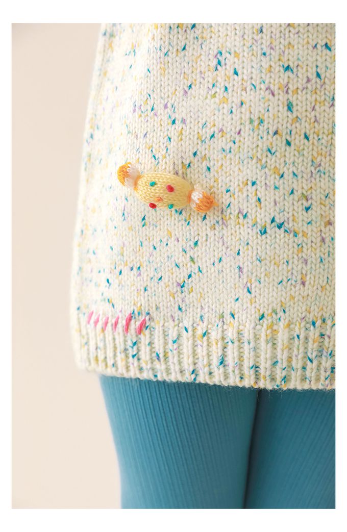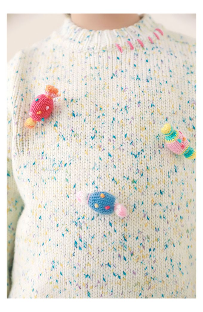 中長版彩點紗長袖針織上衣/毛衣-立體毛線糖果-藍色