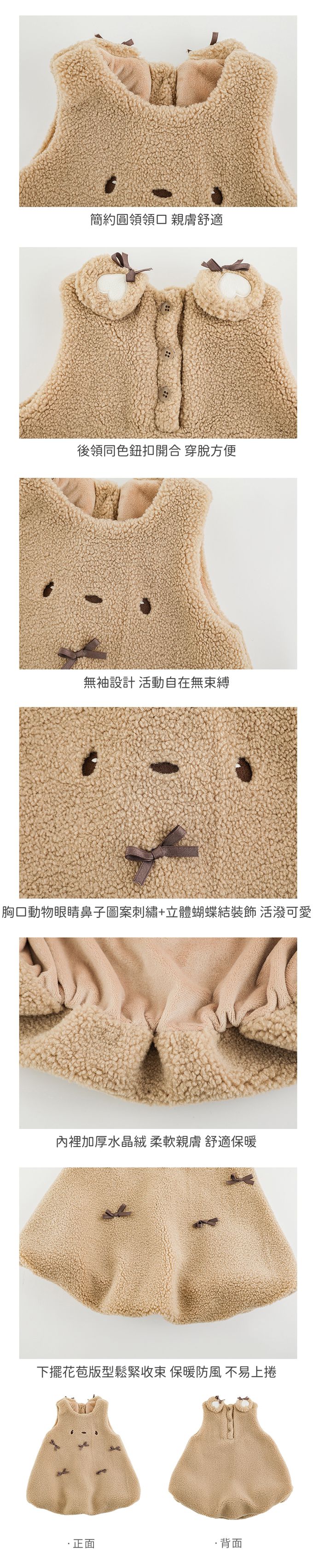 泰迪熊毛毛花苞背心裙/洋裝(加絨)-刺繡表情-卡其色