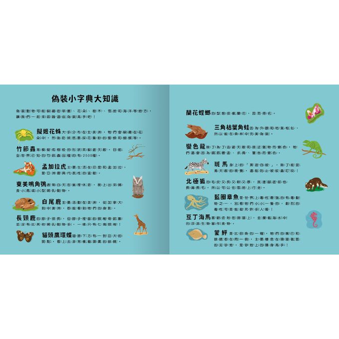 就讓這本書帶你一一找出偽裝動物的蹤影吧!