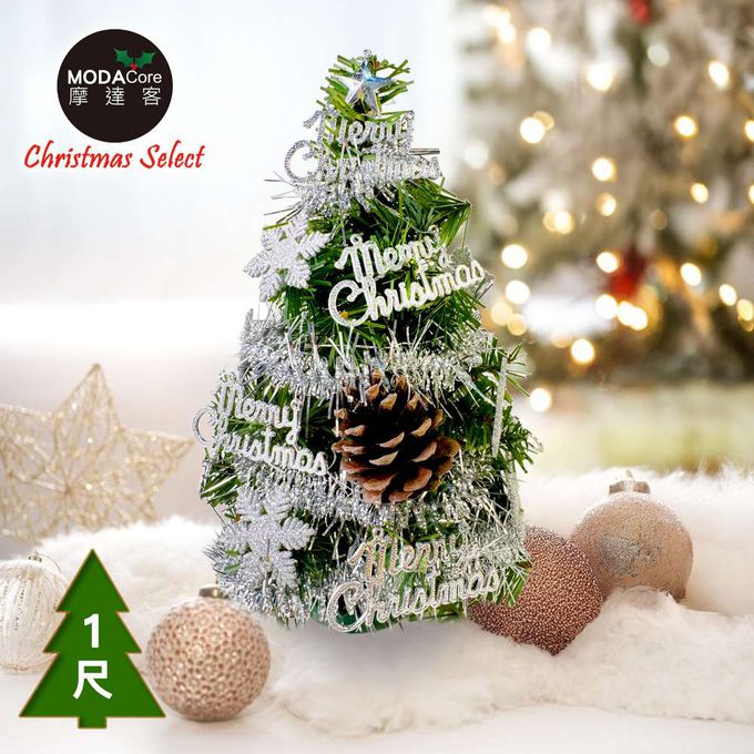 台灣製1尺(30cm)精緻綠色聖誕樹/小小快樂銀牌系裝飾品組不含燈(免組裝)本島免運費/耶誕禮物