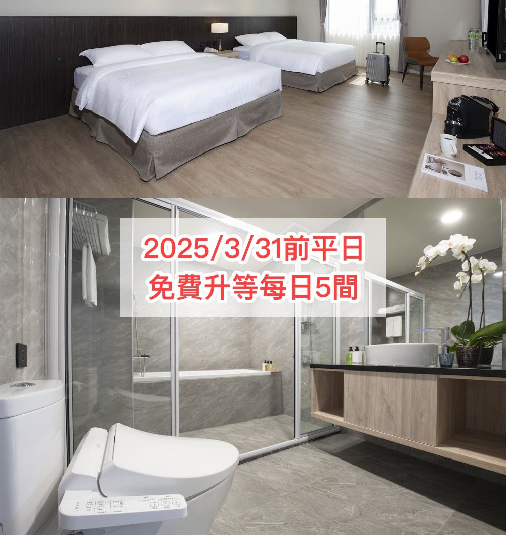 凡2025/3/31前平日(日-四)入住,享免費升等有浴缸房型「馥御客房14坪」(原需加價$1200。每日限量升等5間)。(國定假日/國定連假/補班日除外)