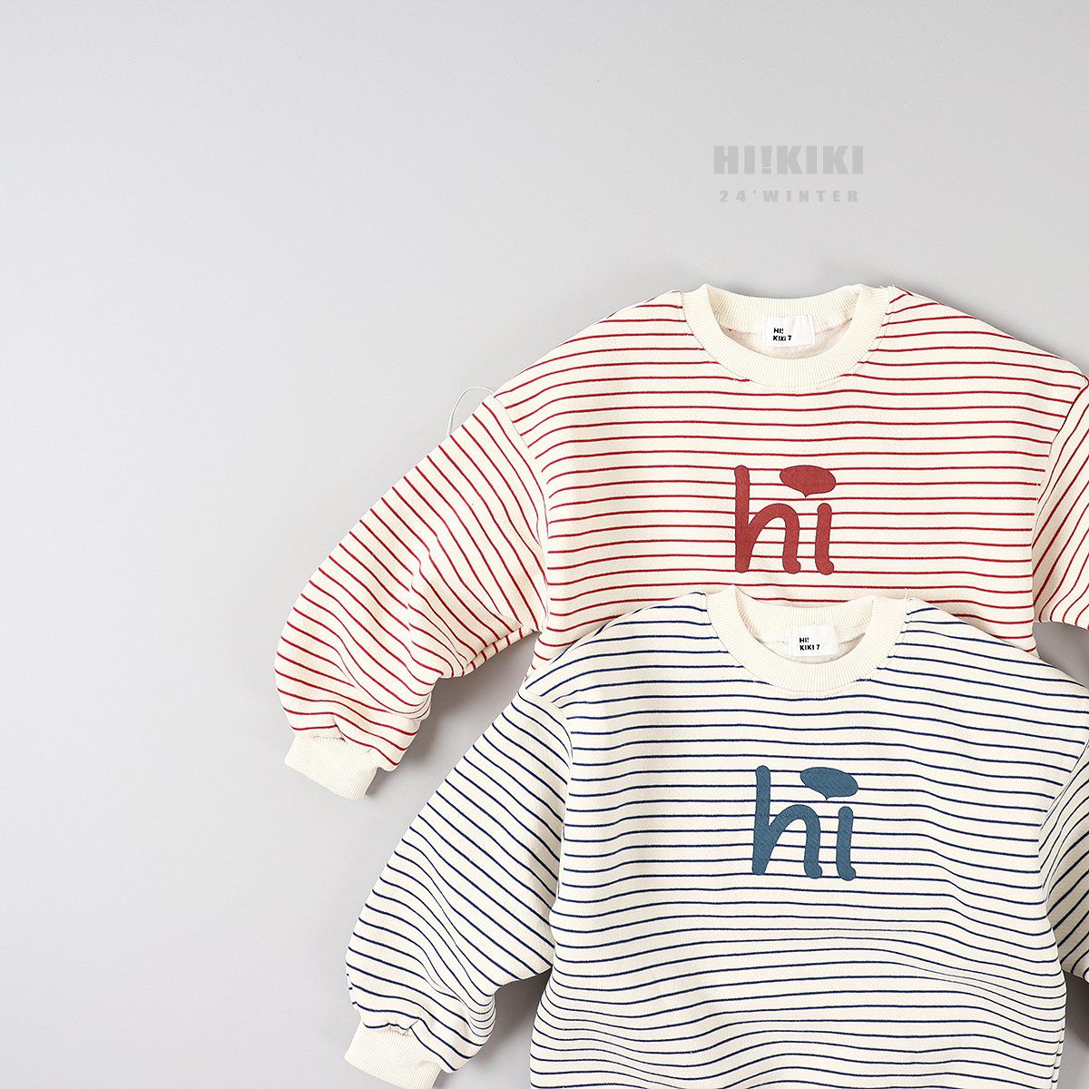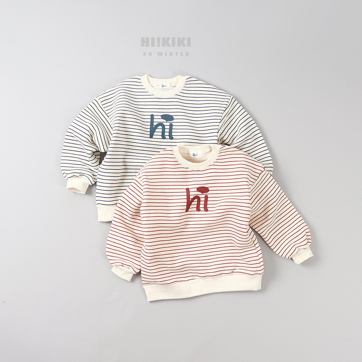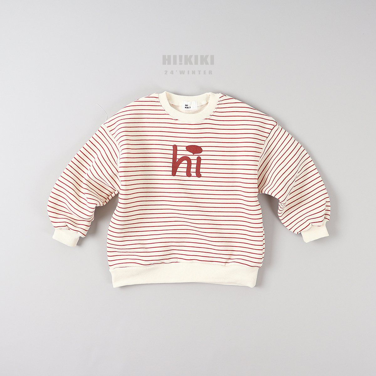 韓國 HIKIKI - (內磨毛)Hi條紋長袖大學T