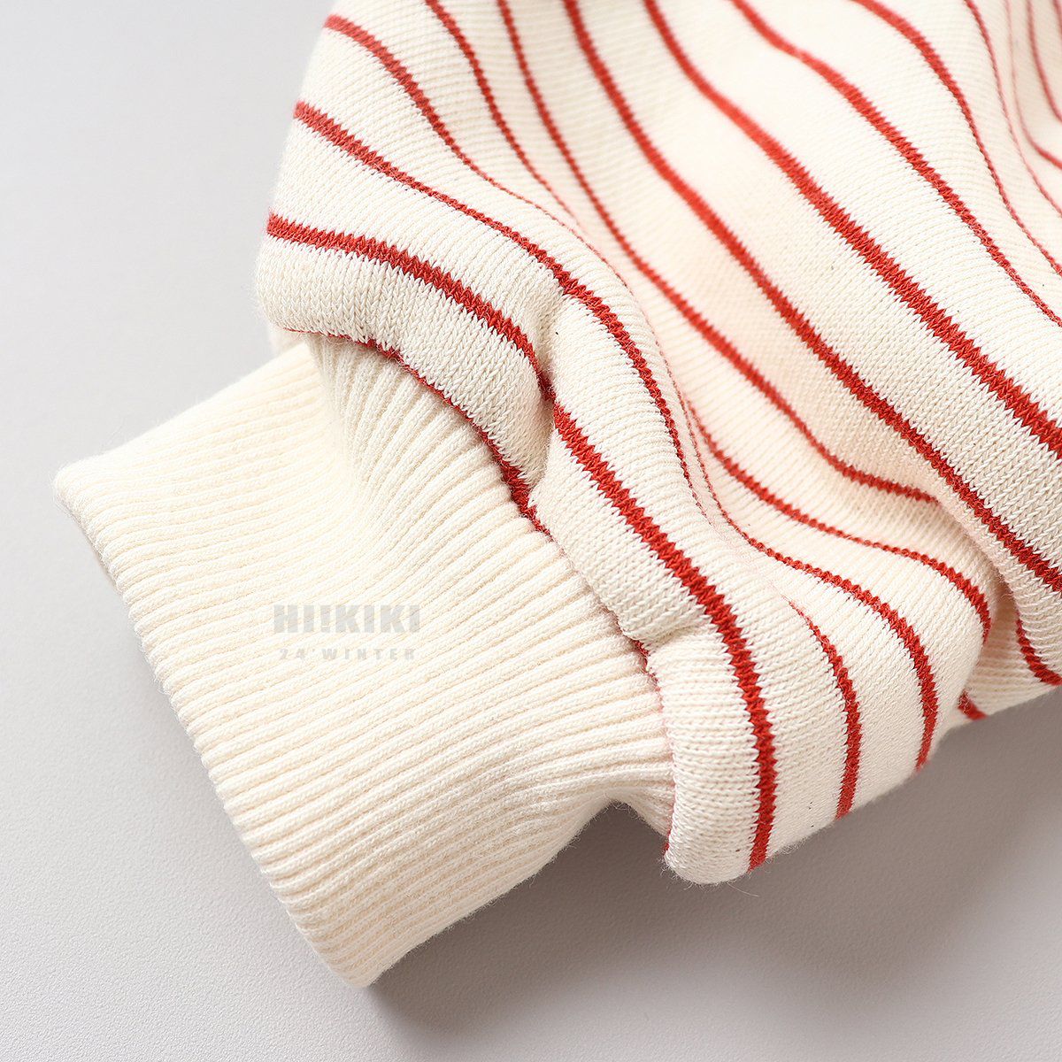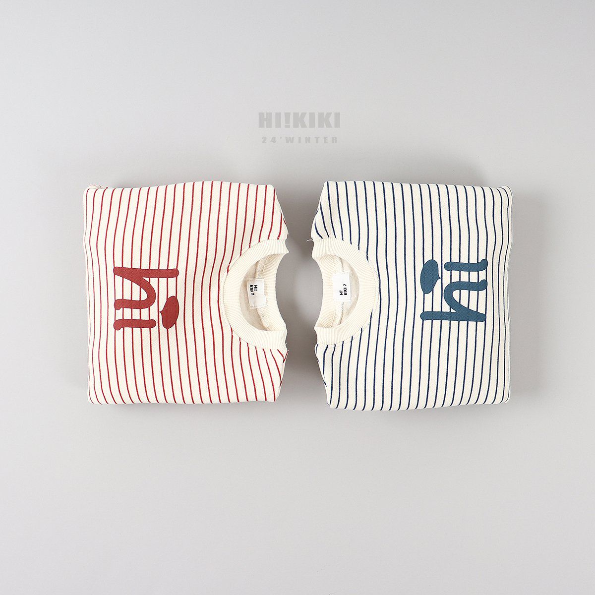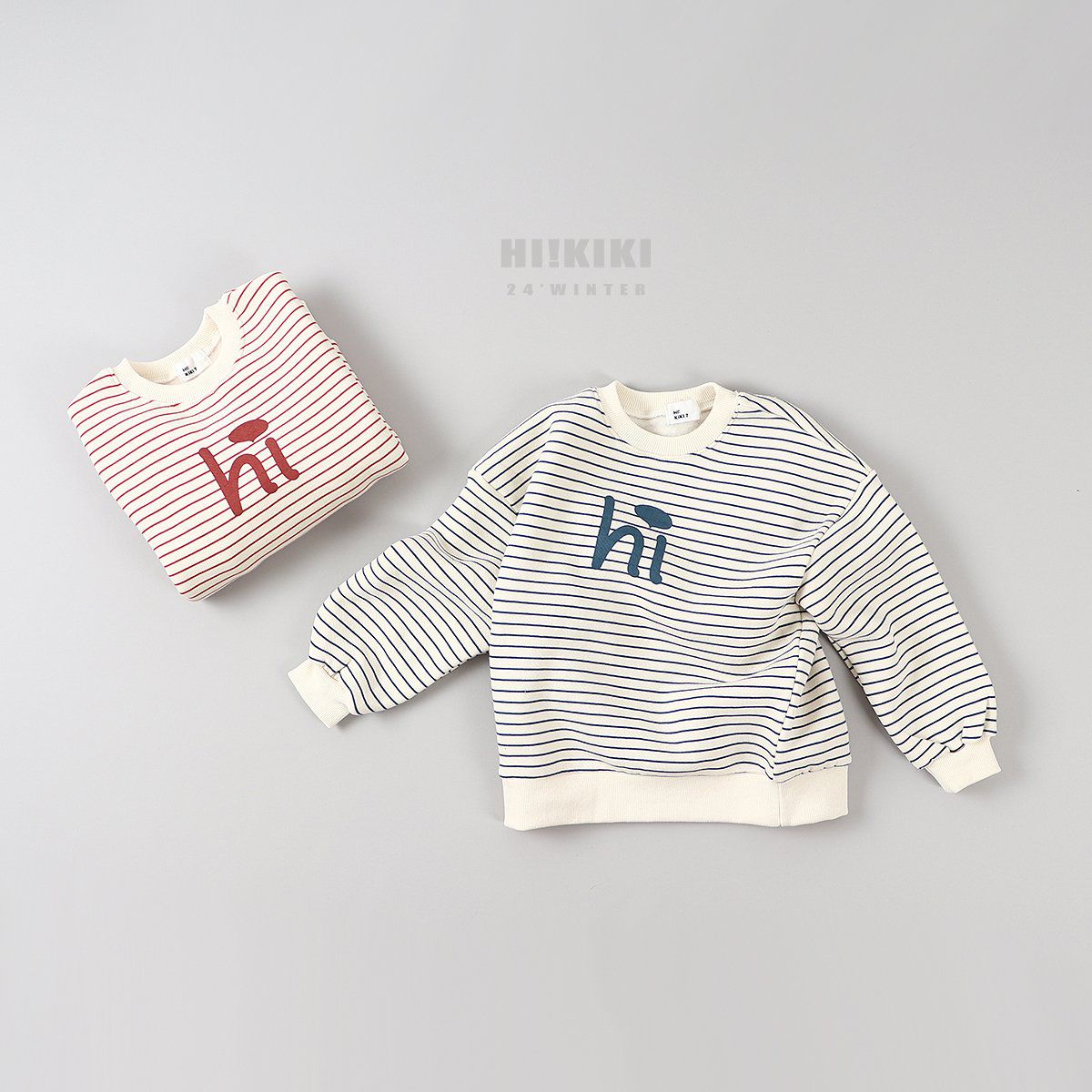 韓國 HIKIKI - (內磨毛)Hi條紋長袖大學T