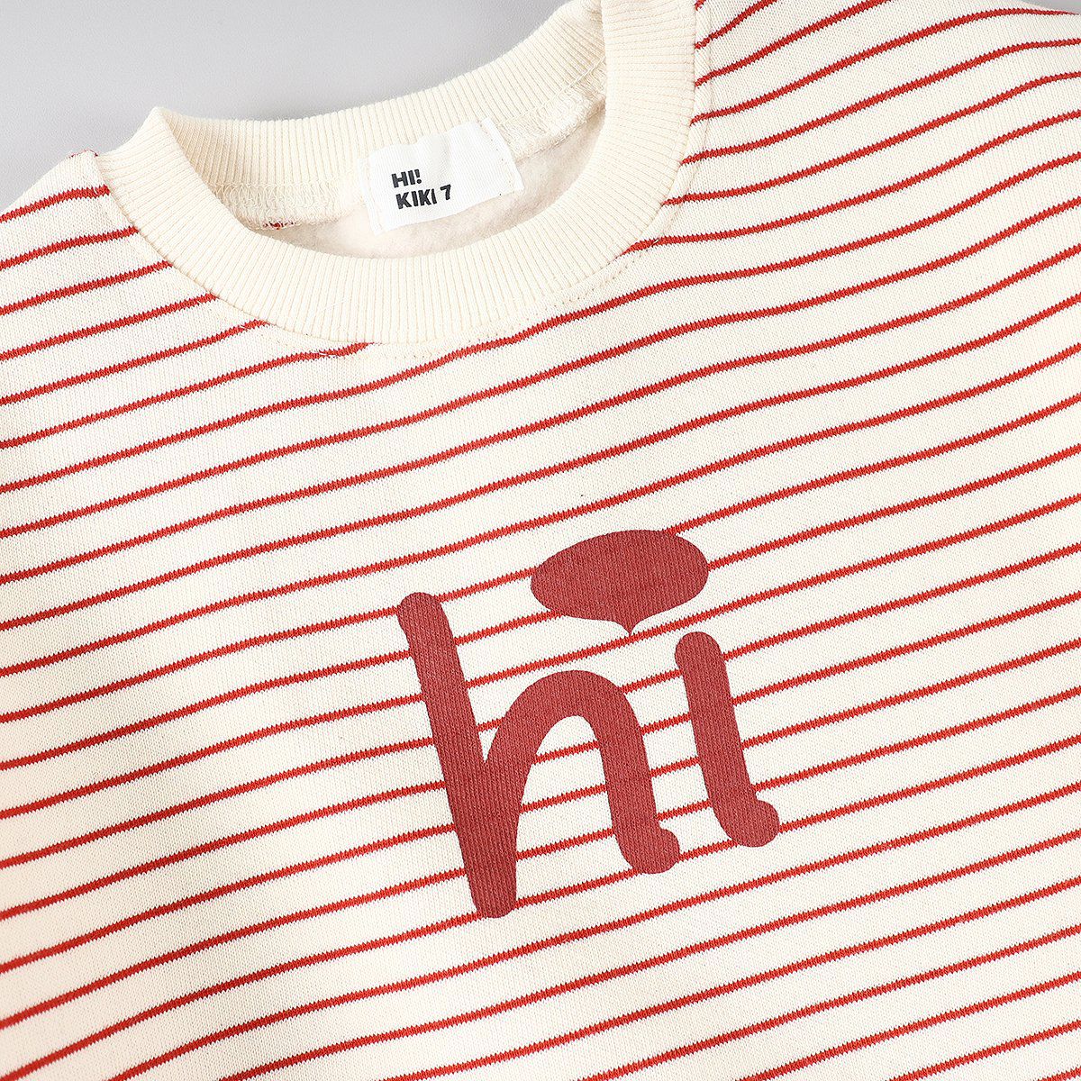 韓國 HIKIKI - (內磨毛)Hi條紋長袖大學T-紅