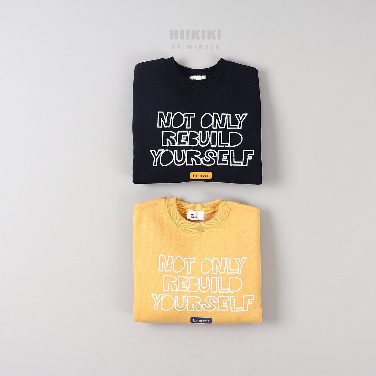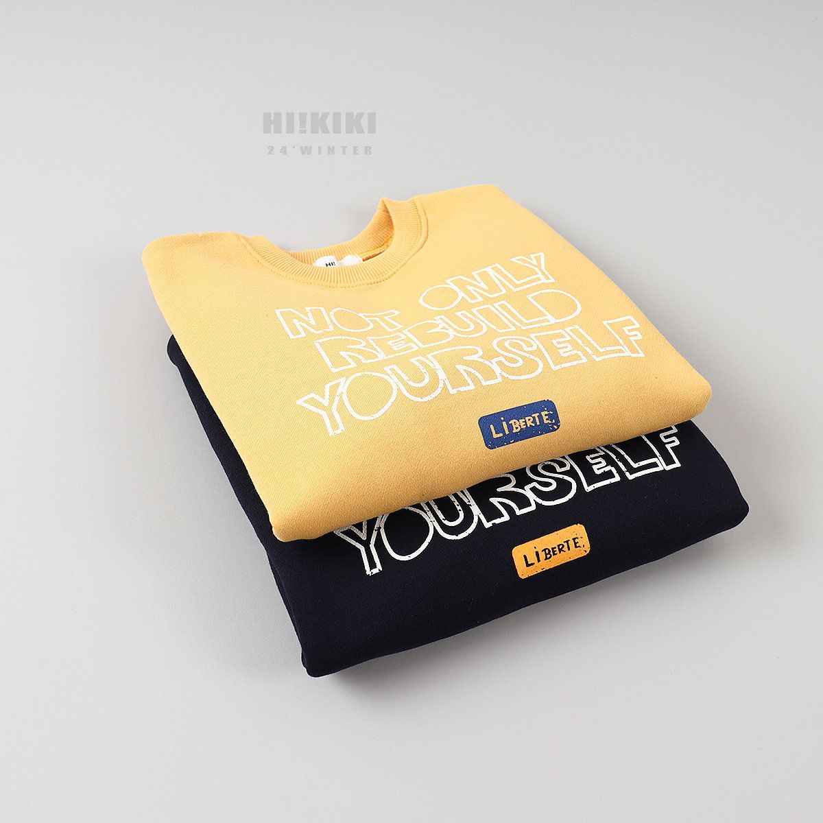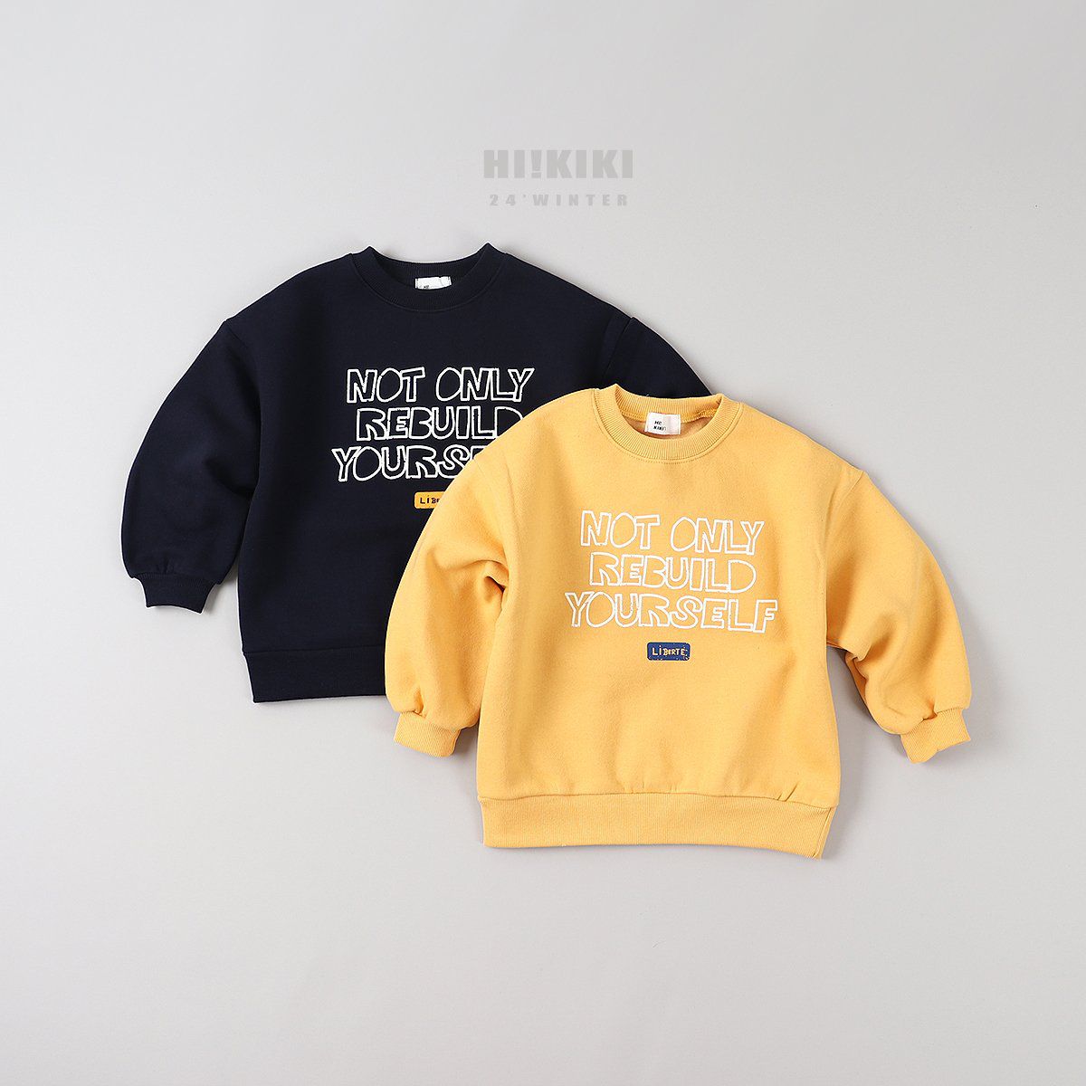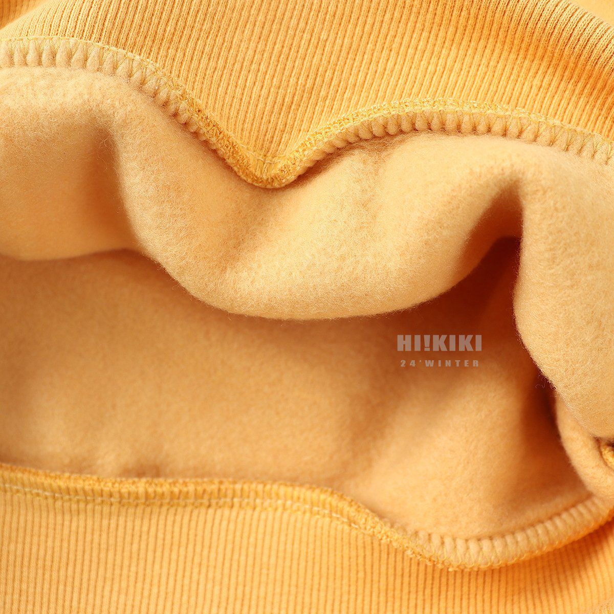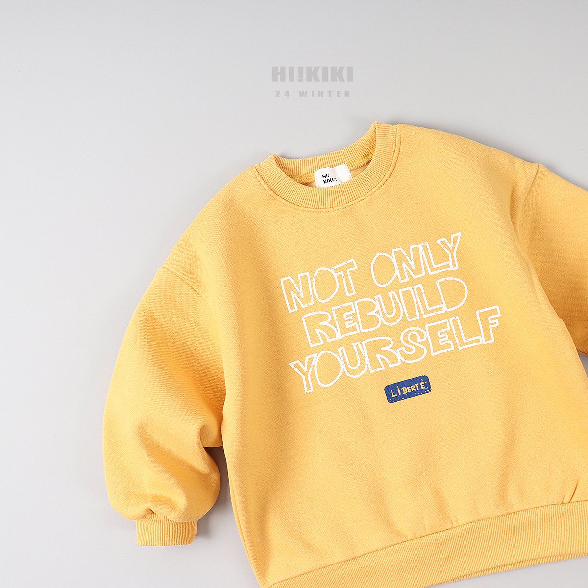 韓國 HIKIKI - (內磨毛)文字長袖大學T-黃