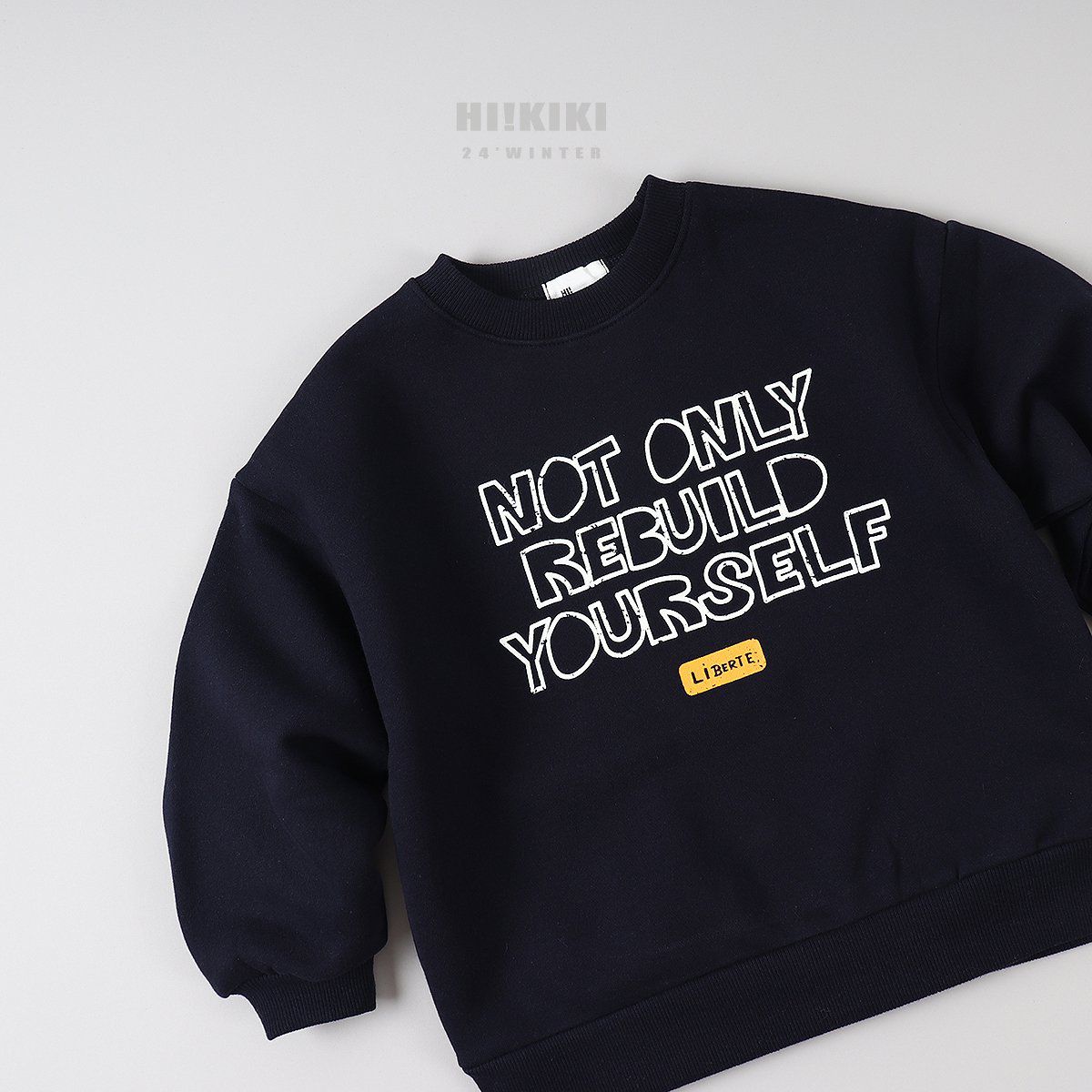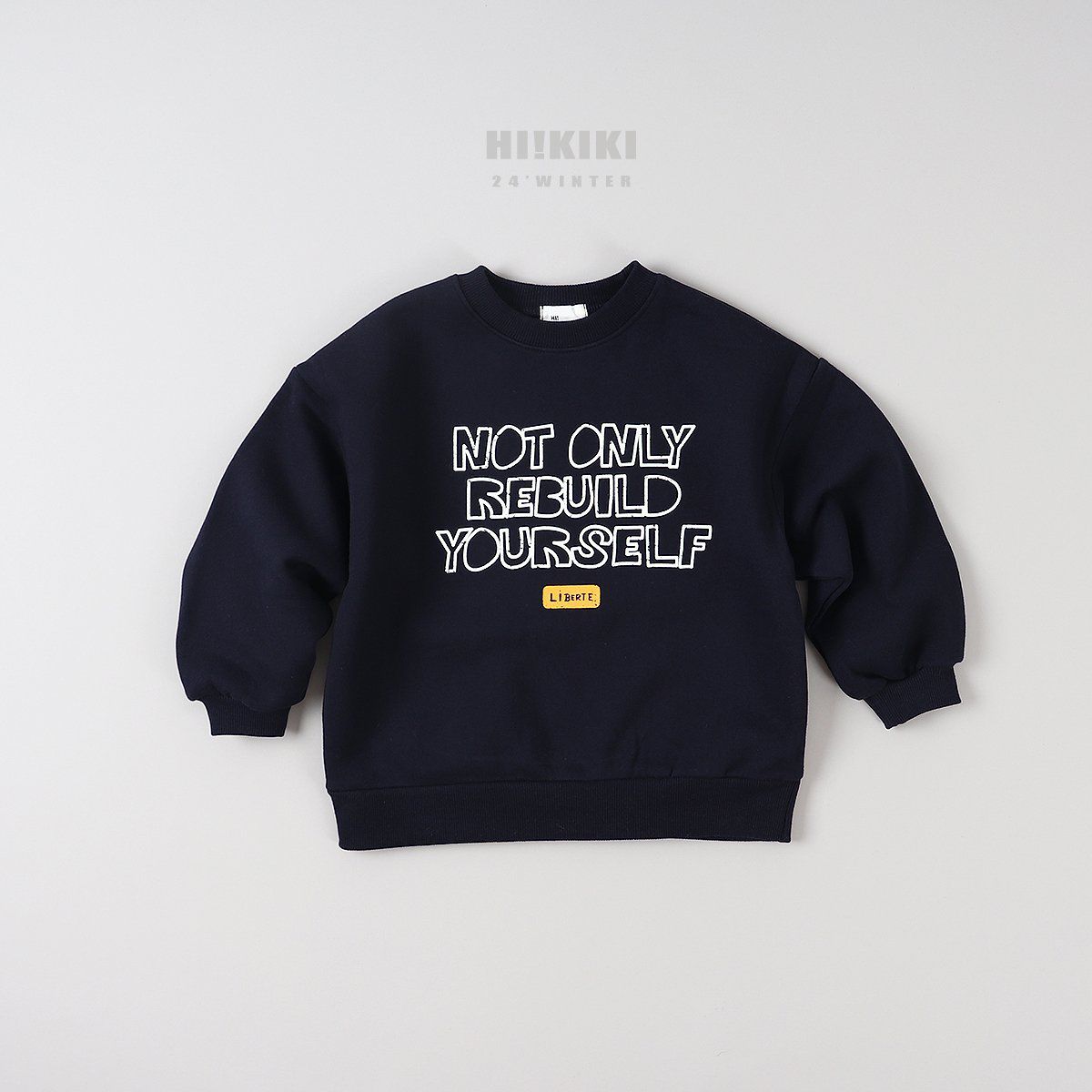 韓國 HIKIKI - (內磨毛)文字長袖大學T-海軍藍