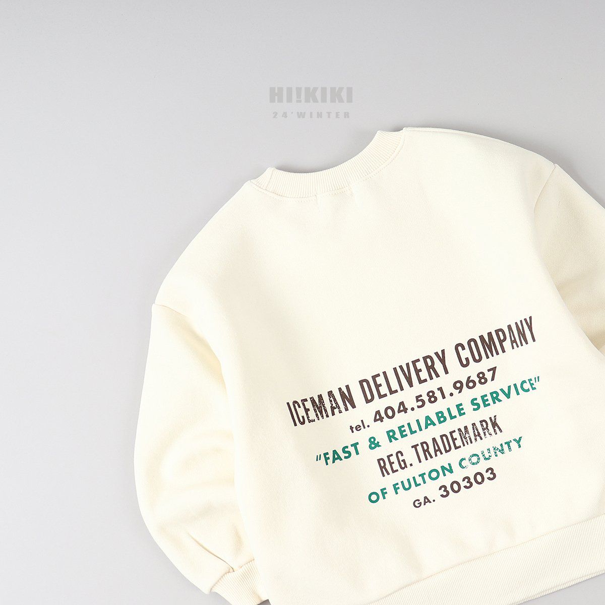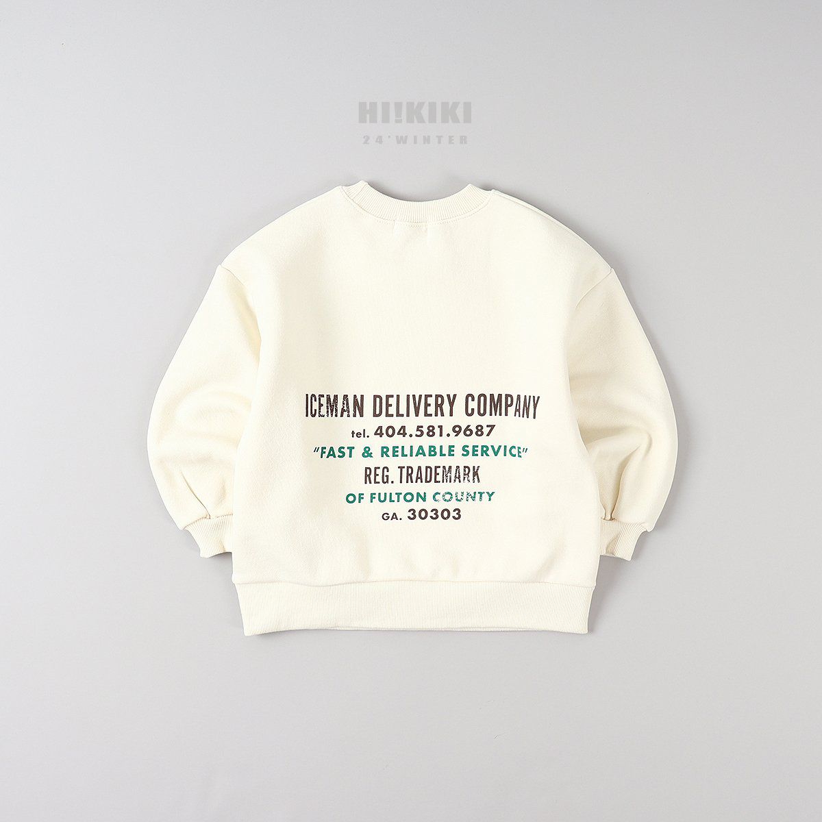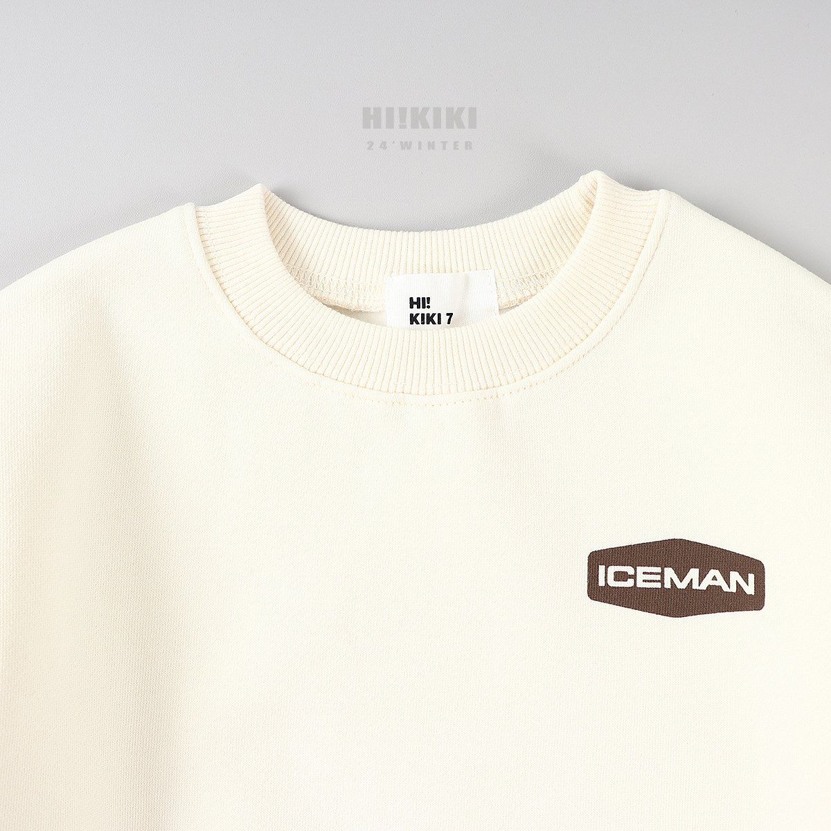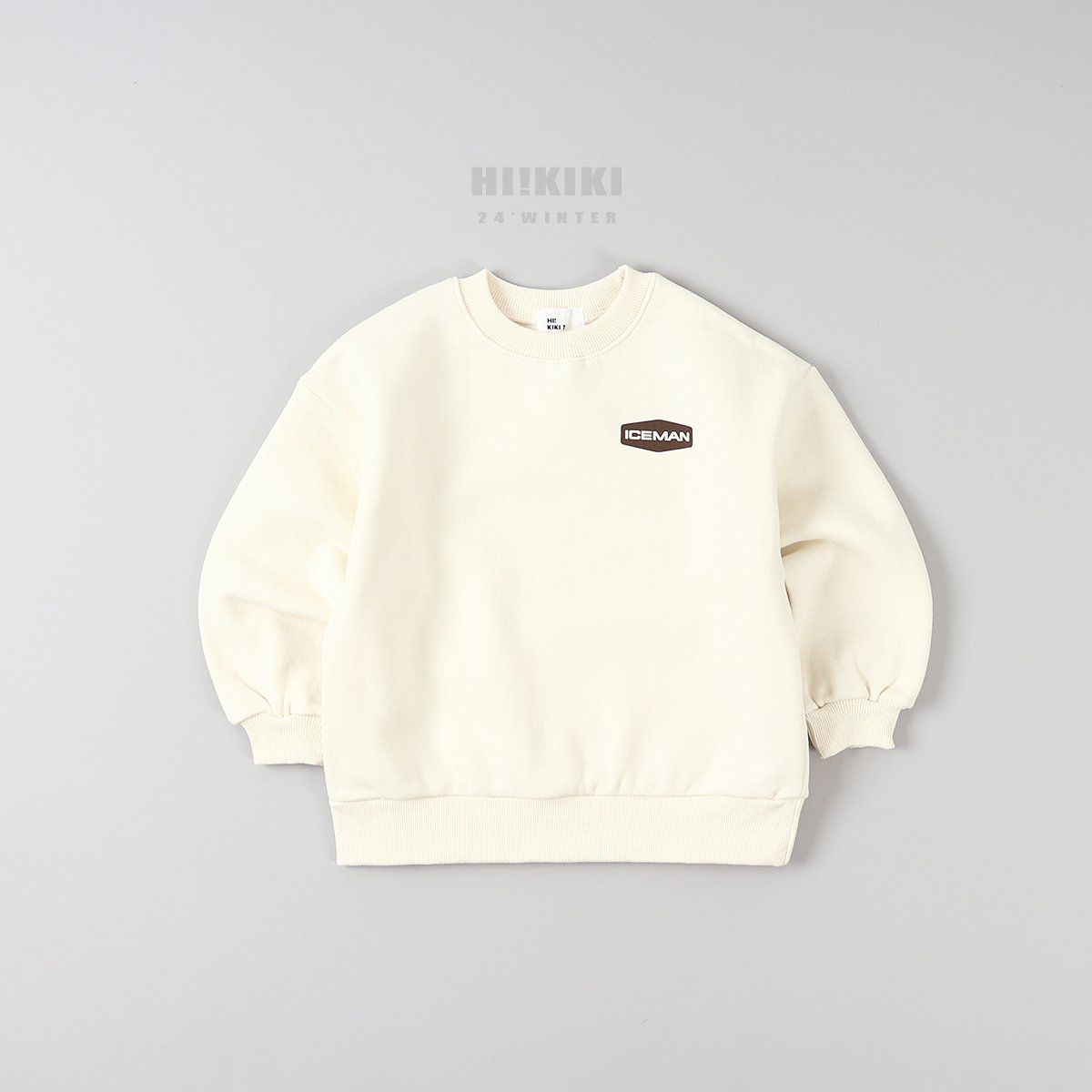 韓國 HIKIKI - (內磨毛)ICEMAN長袖大學T-乳酪白