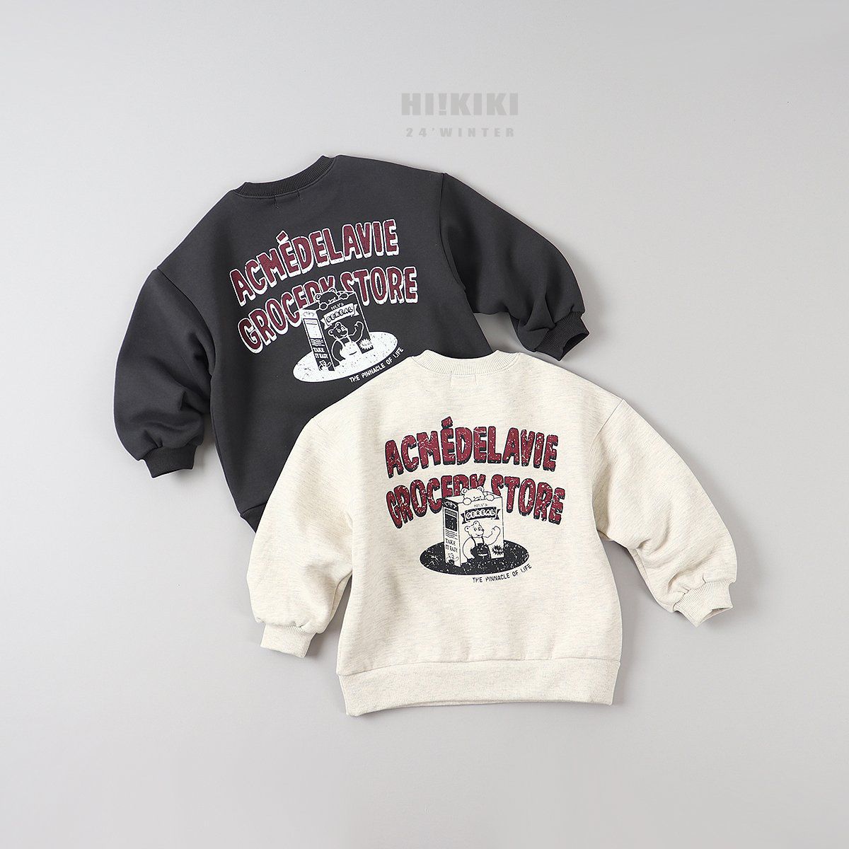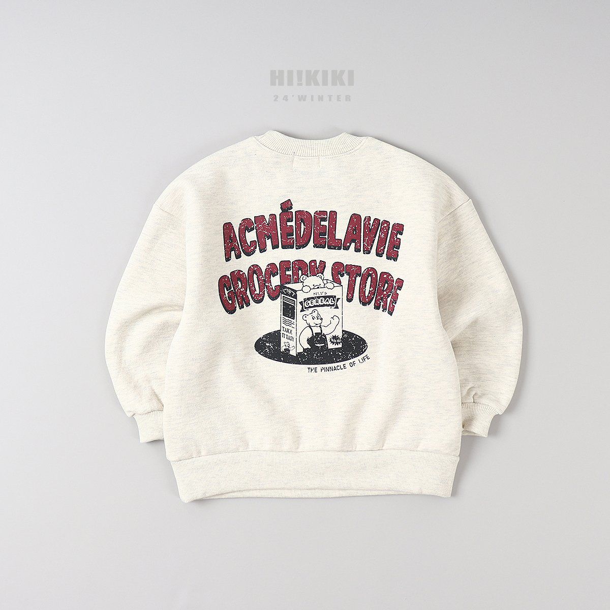 韓國 HIKIKI - (內磨毛)斑駁印刷風長袖大學T-燕麥米