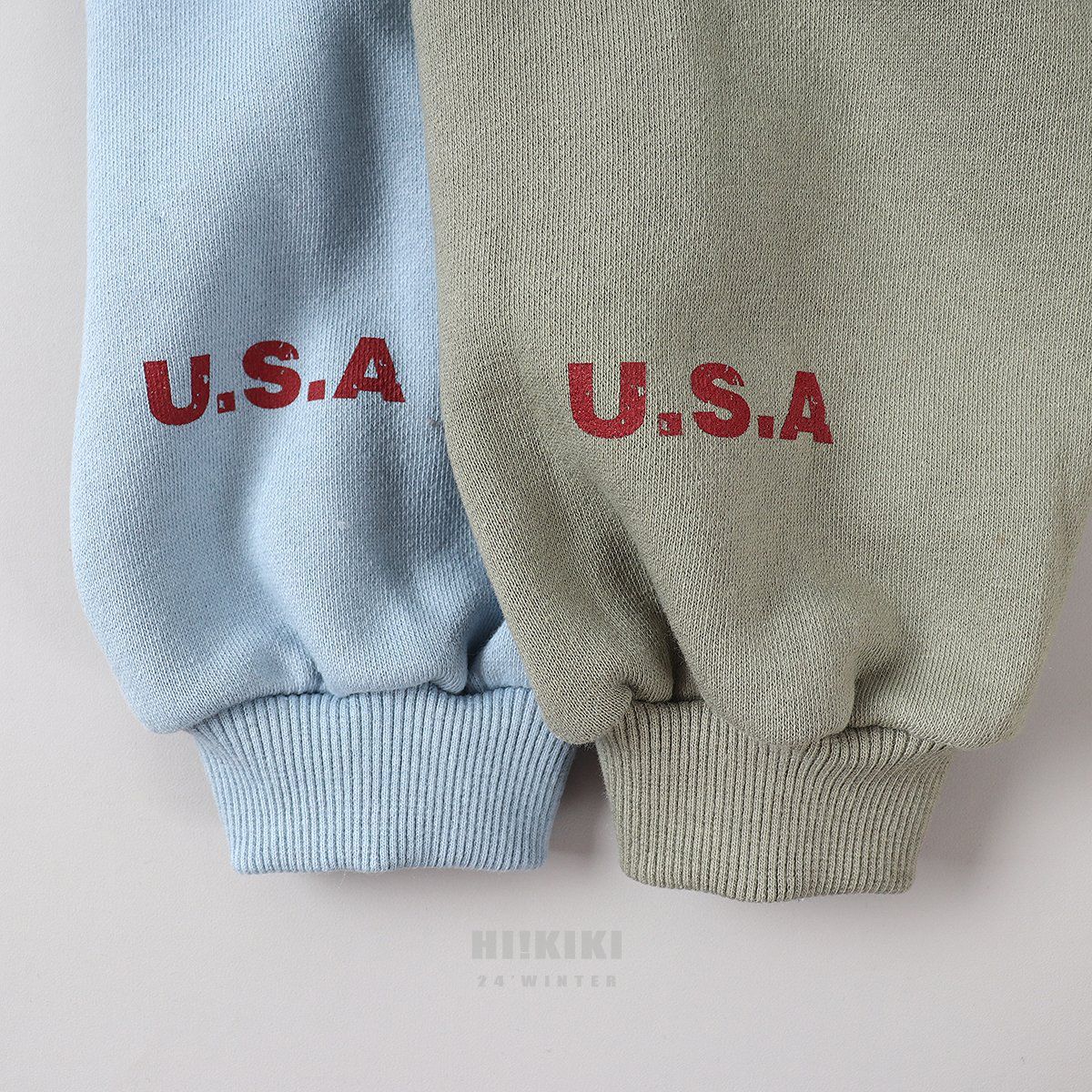 韓國 HIKIKI - (內磨毛)1986長袖大學T-淺軍綠