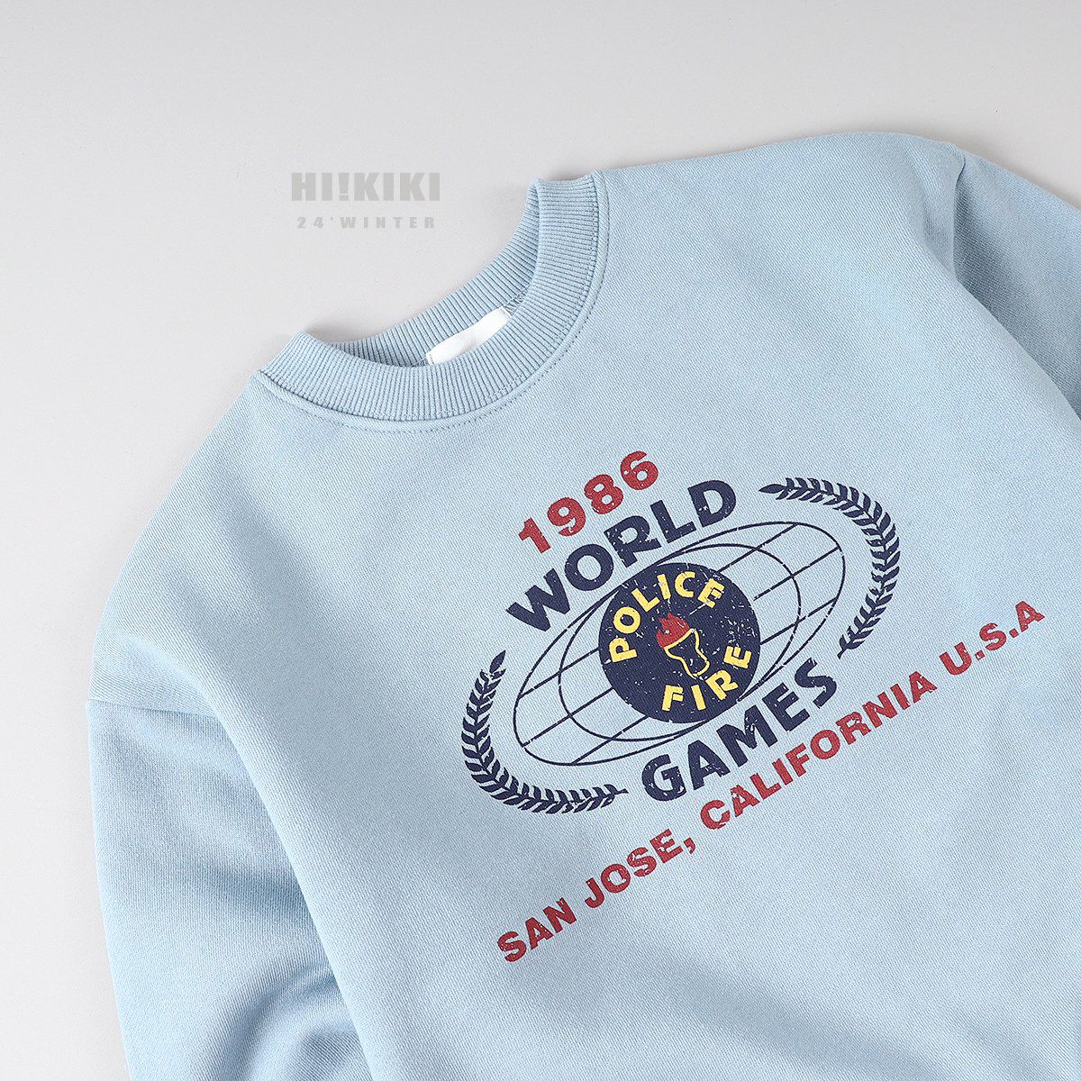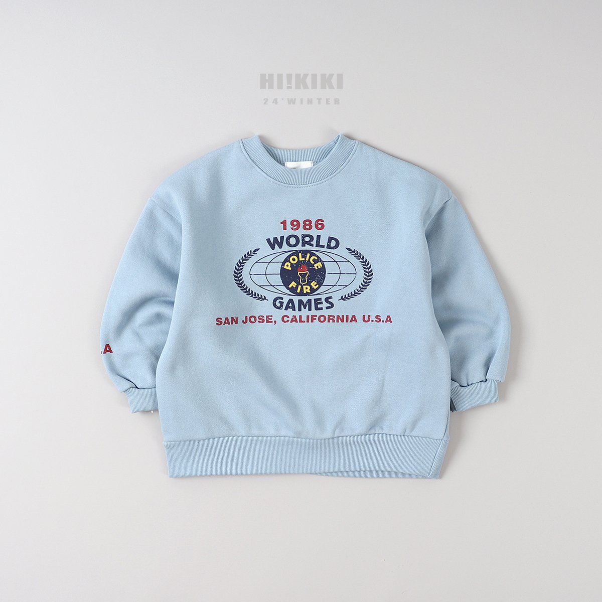 韓國 HIKIKI - (內磨毛)1986長袖大學T-天藍