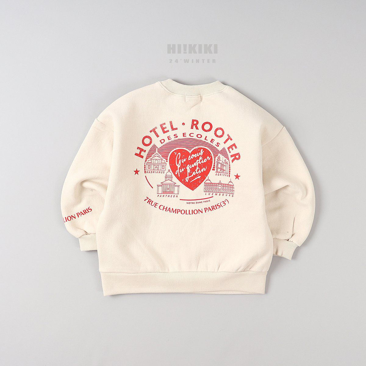 韓國 HIKIKI - (內磨毛)愛心建築物長袖大學T-米杏