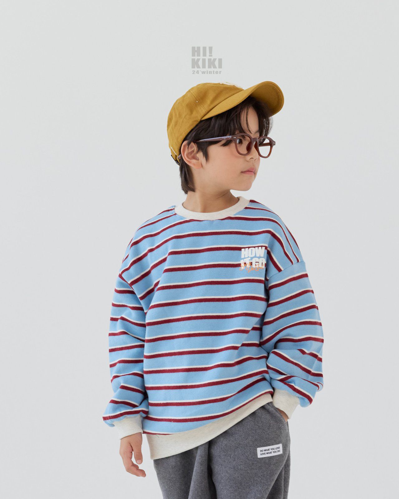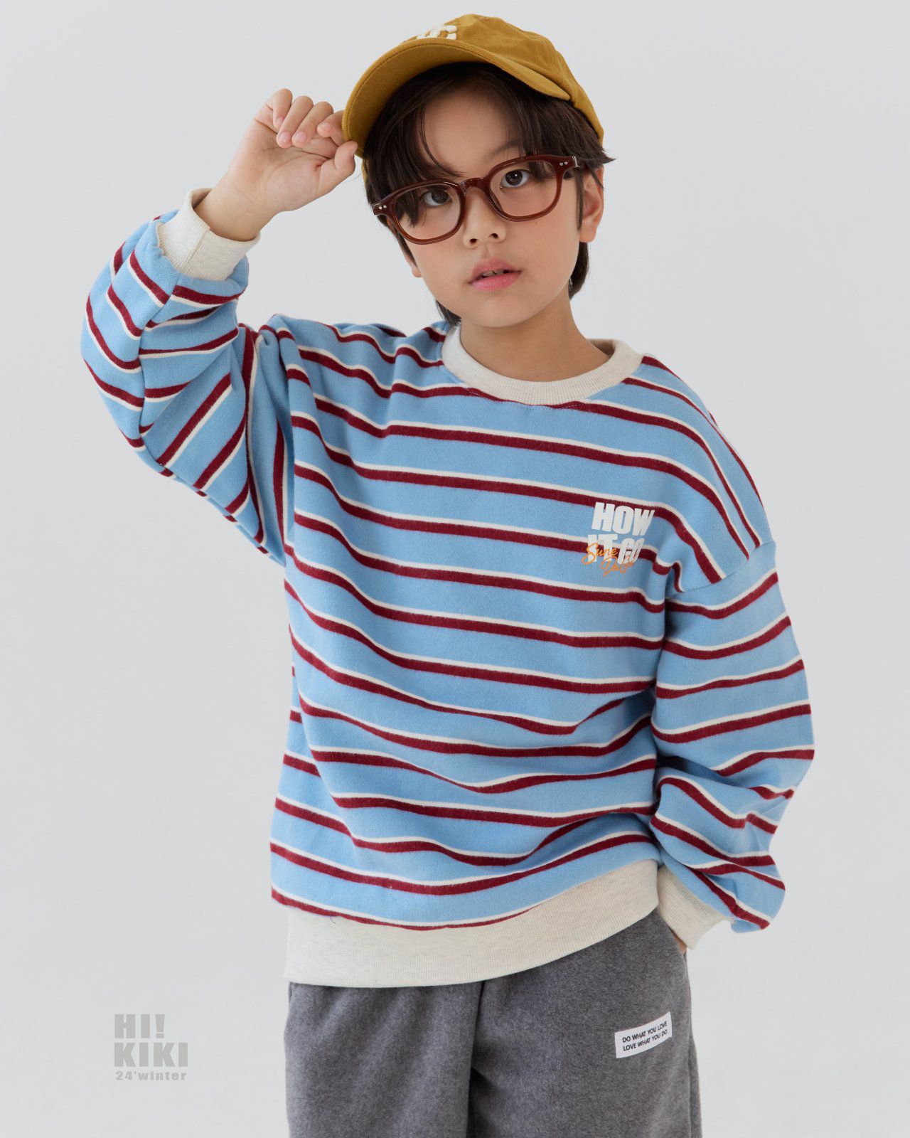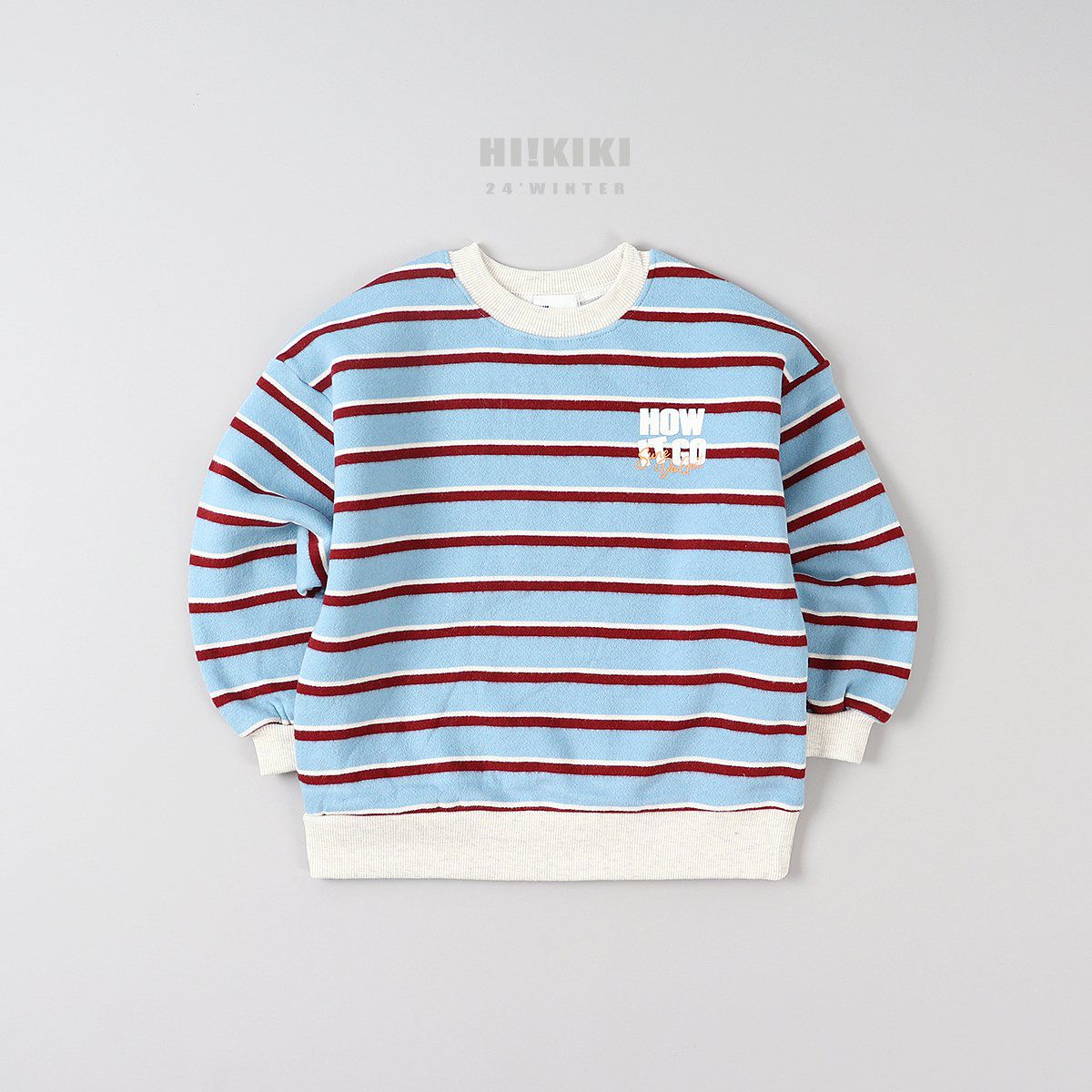 韓國 HIKIKI - (內磨毛)雙色條紋長袖大學T-天藍