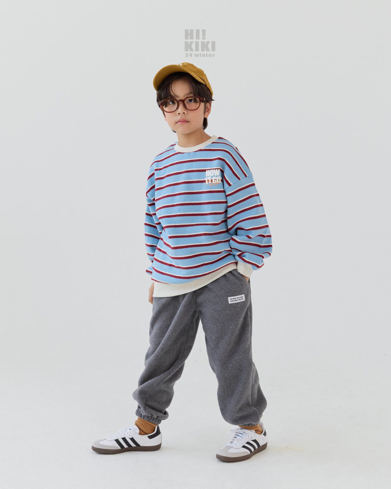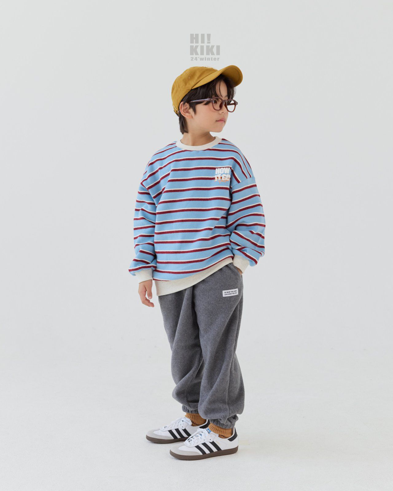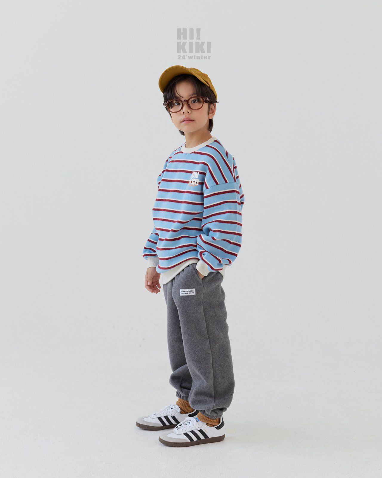 韓國 HIKIKI - (內磨毛)雙色條紋長袖大學T