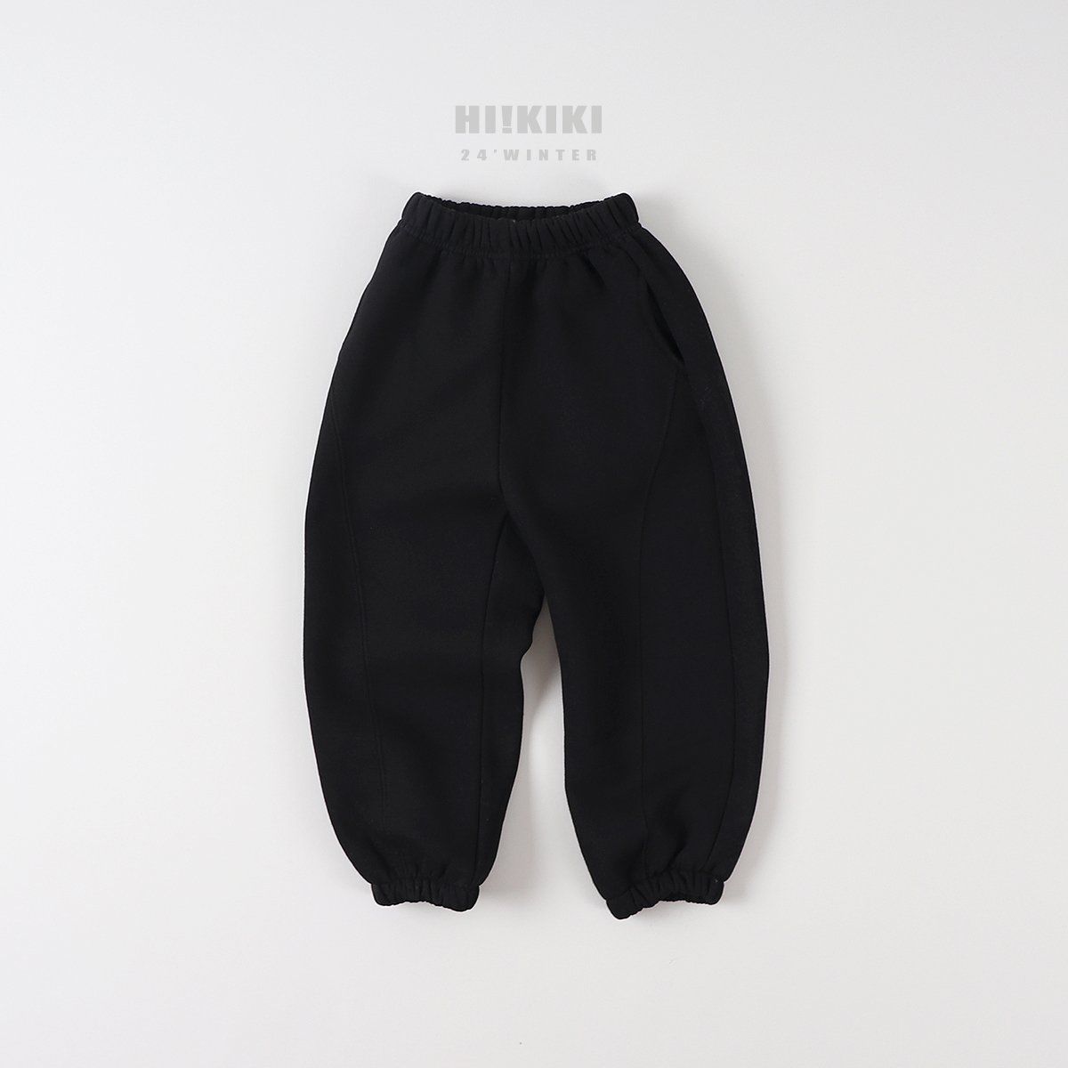 韓國 HIKIKI - (內磨毛)鬆緊腰線條感縮口休閒褲-黑