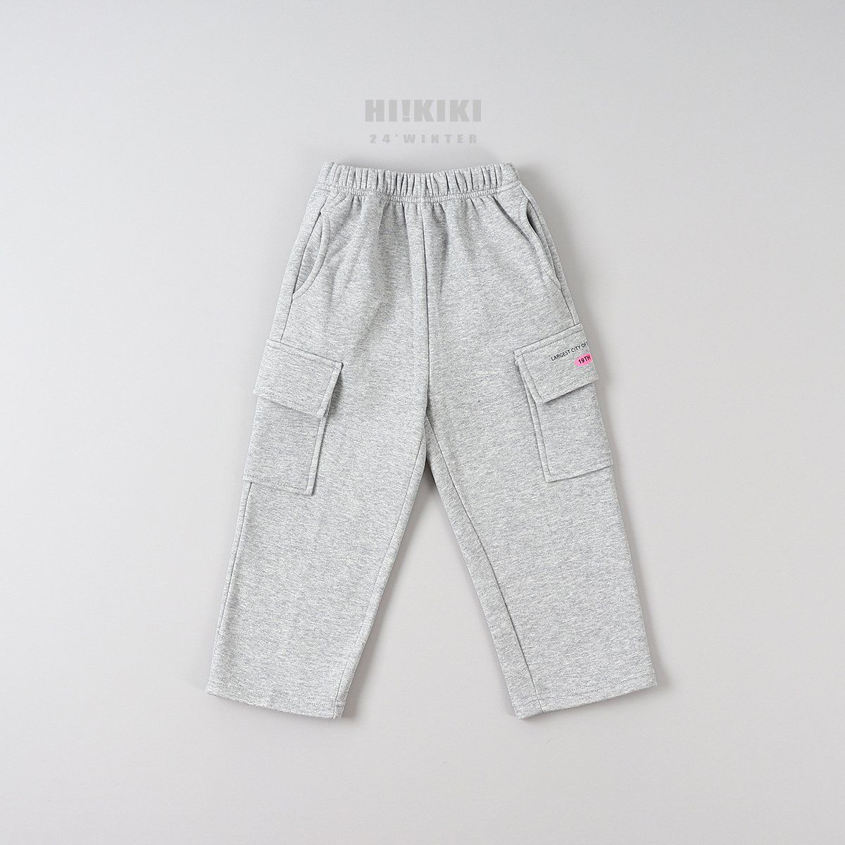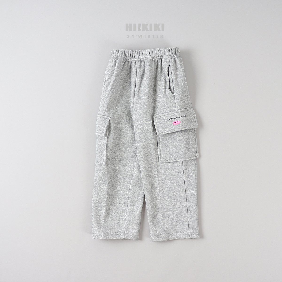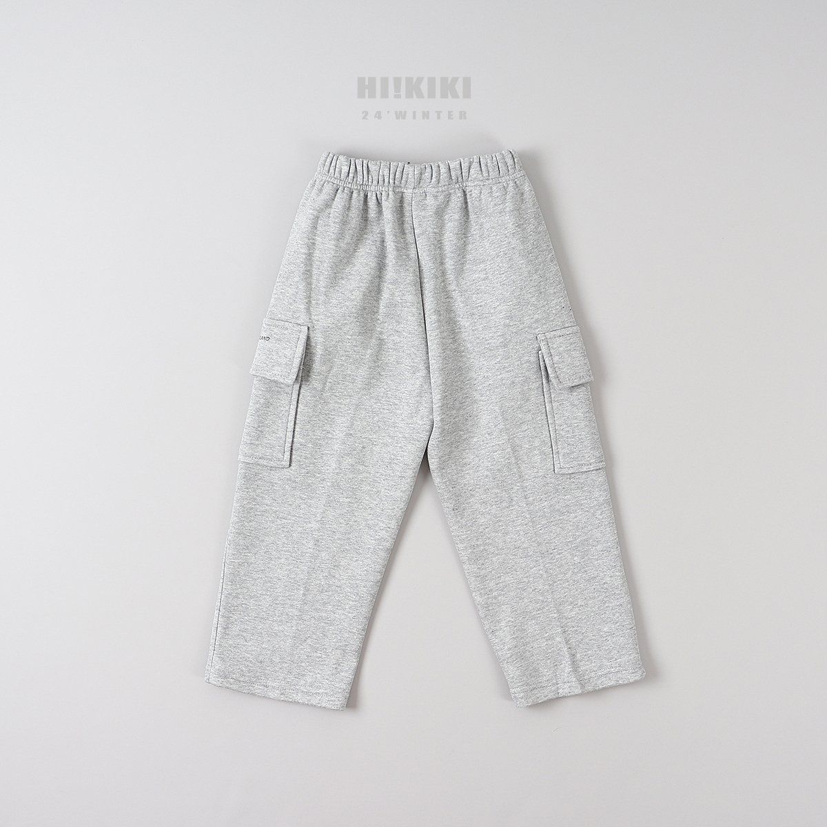 韓國 HIKIKI - 鬆緊腰大口袋工裝風格長褲-灰
