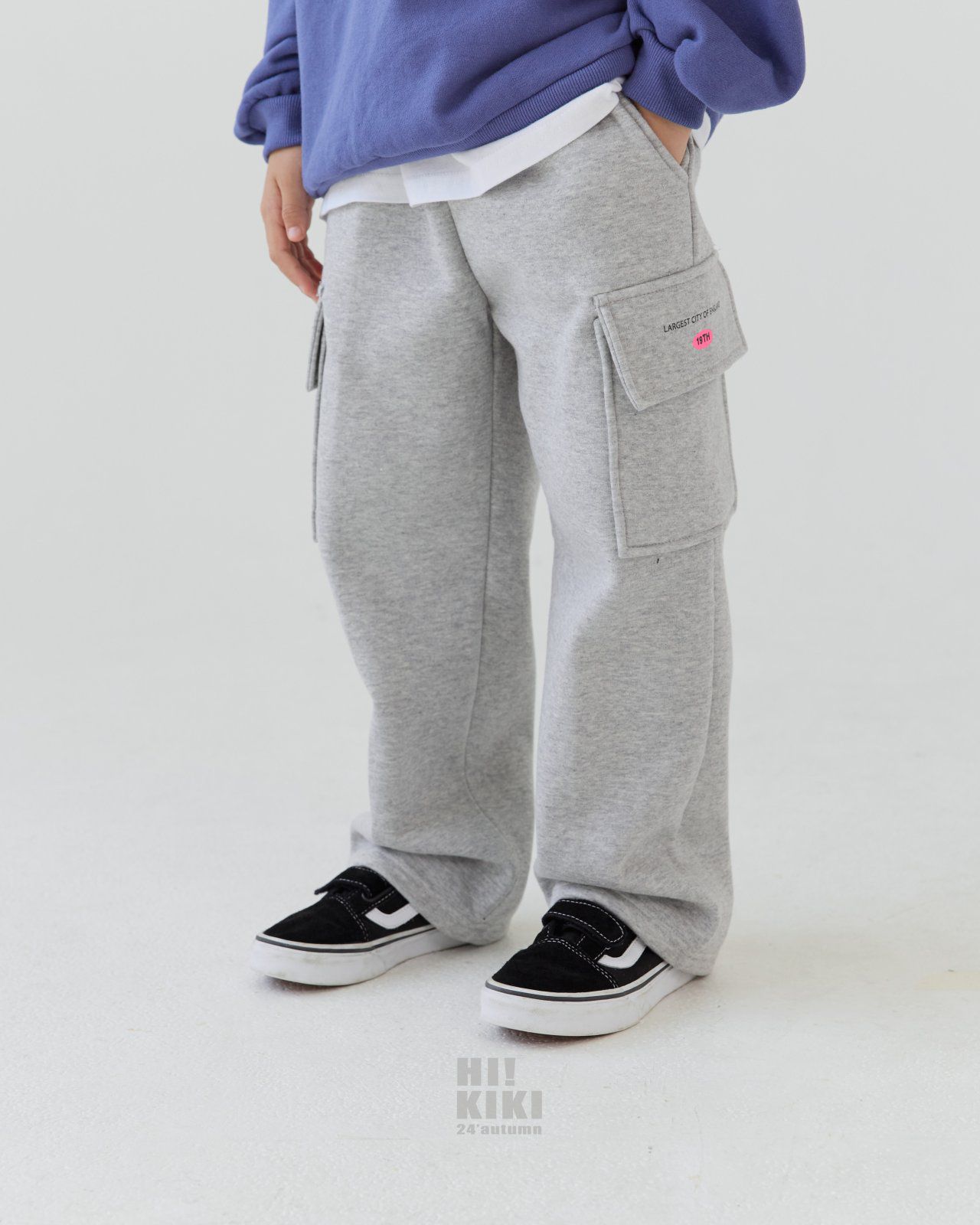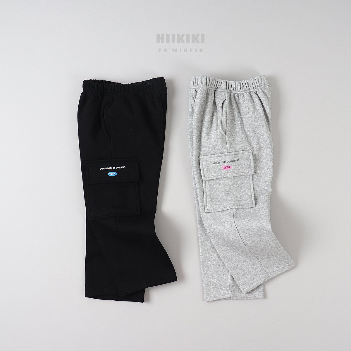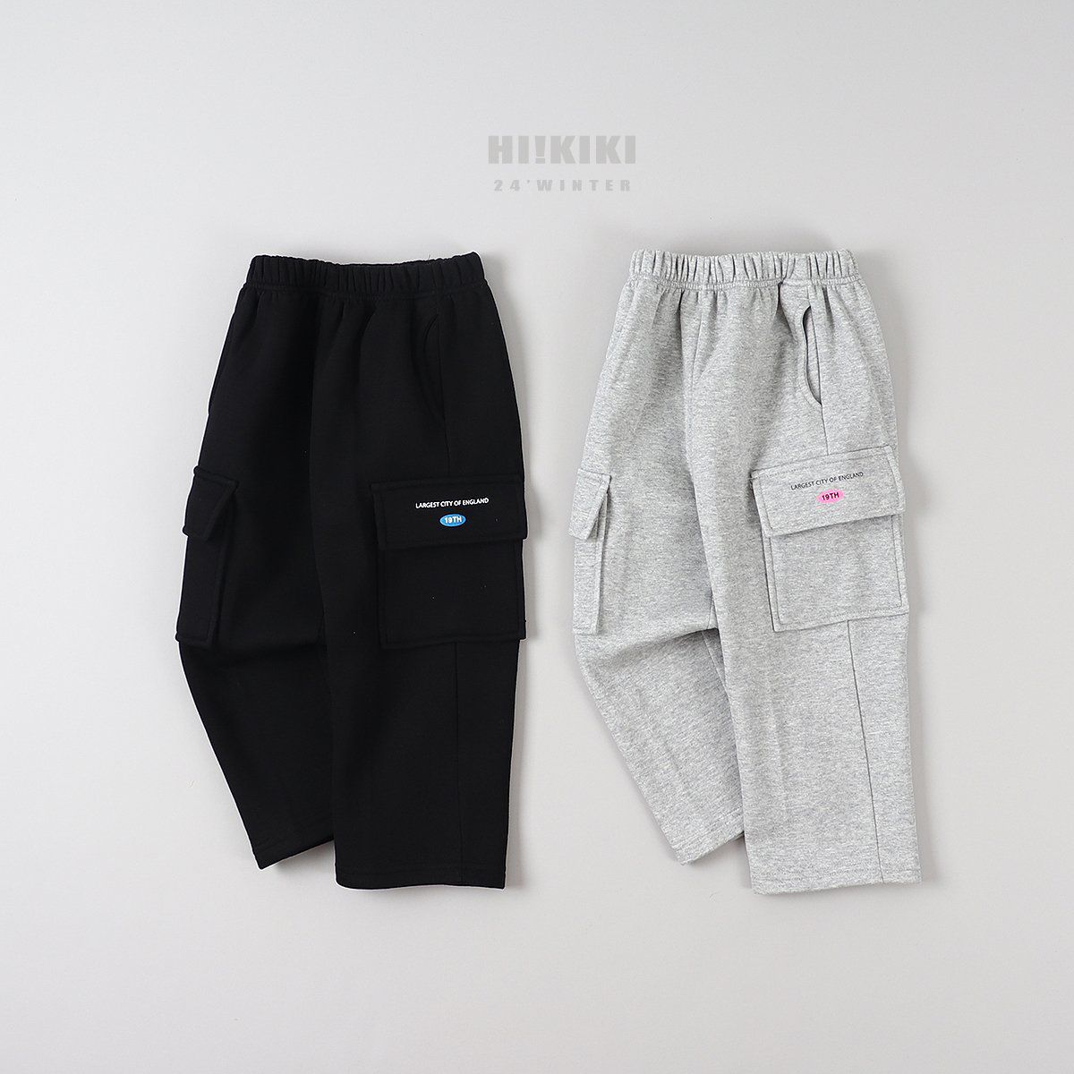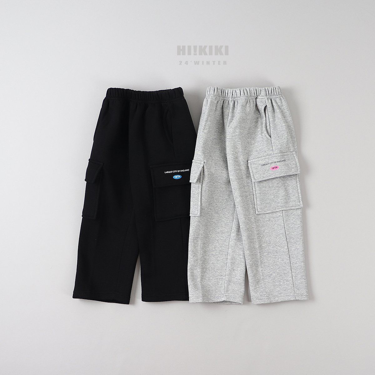 韓國 HIKIKI - 鬆緊腰大口袋工裝風格長褲-灰