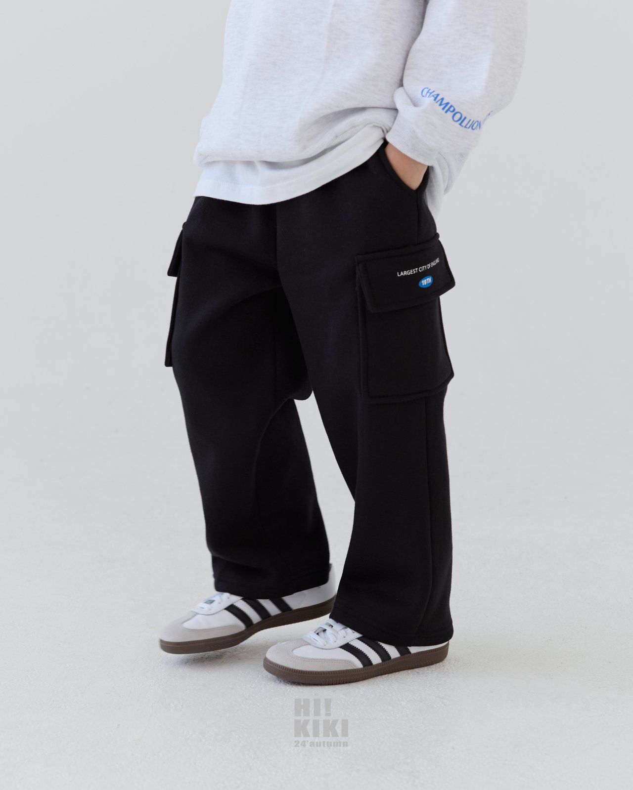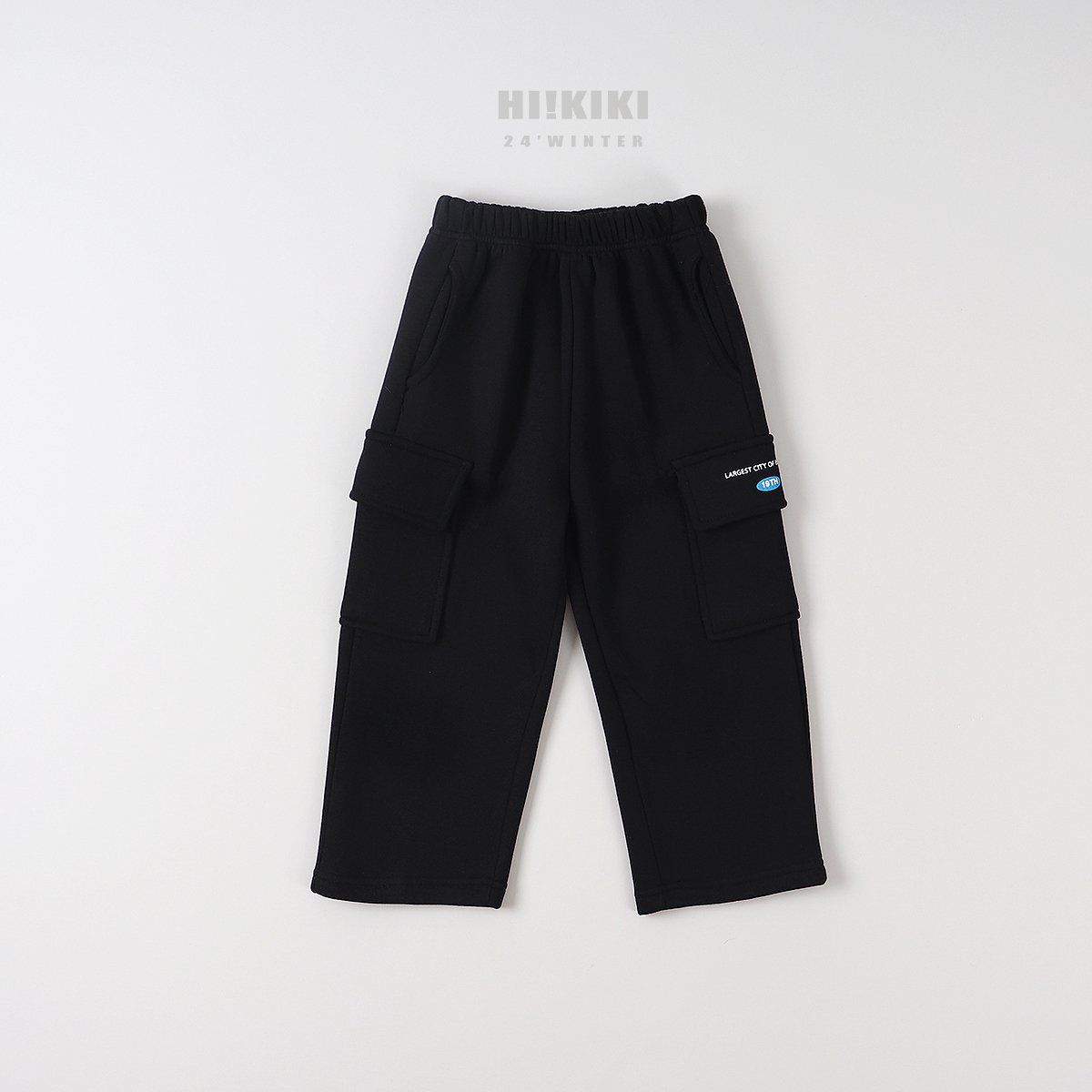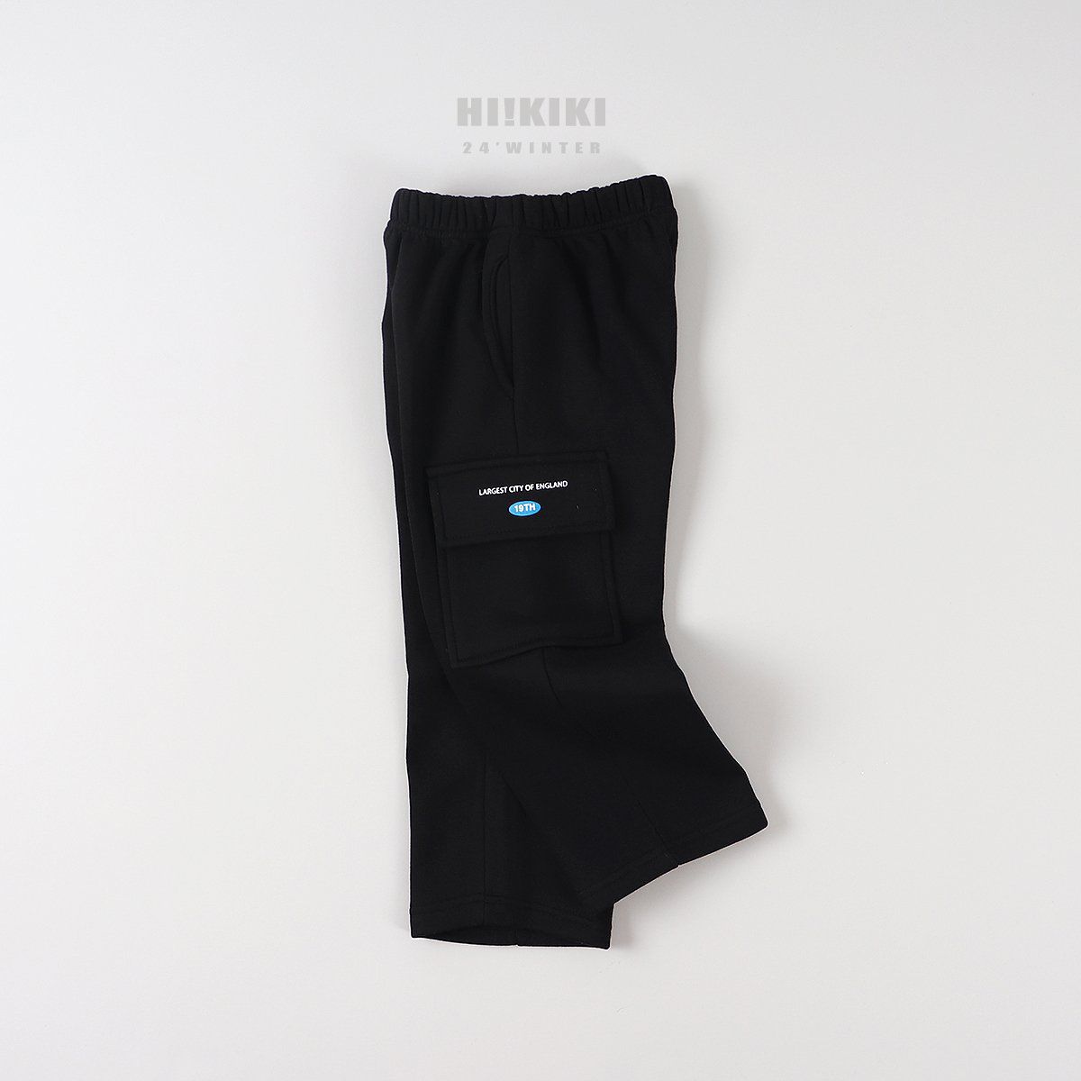 韓國 HIKIKI - 鬆緊腰大口袋工裝風格長褲-黑