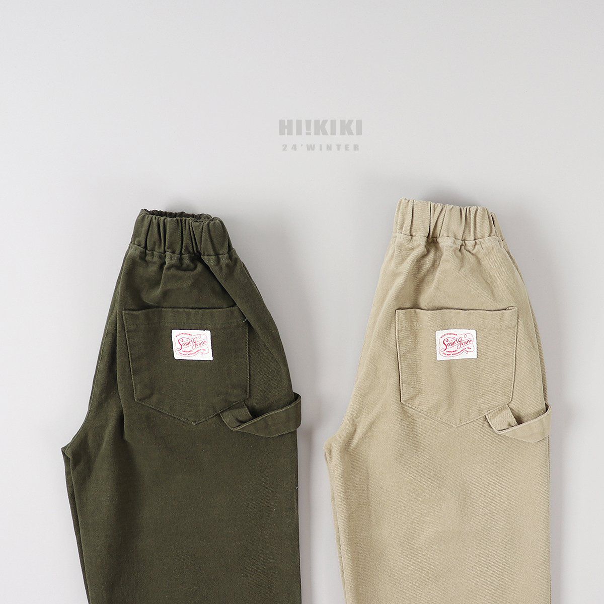 韓國 HIKIKI - 鬆緊腰磨毛感工裝風格長褲
