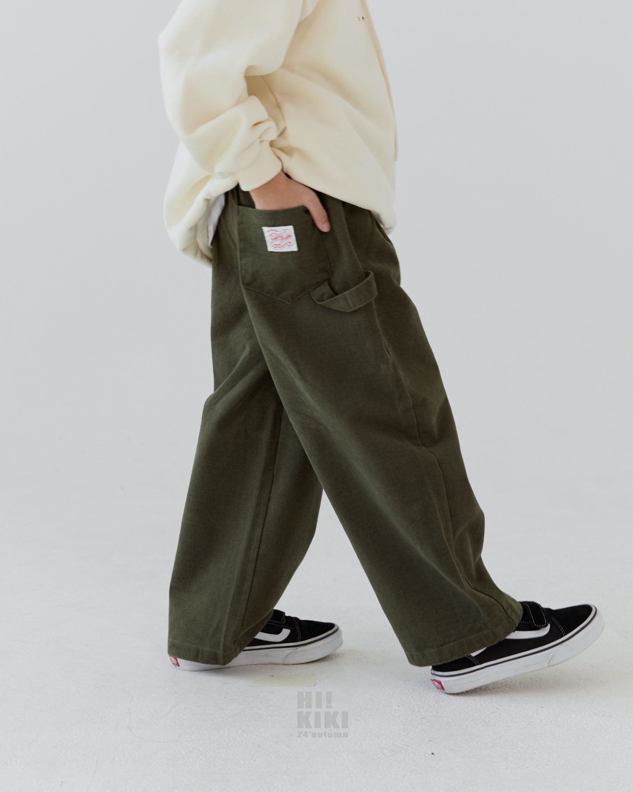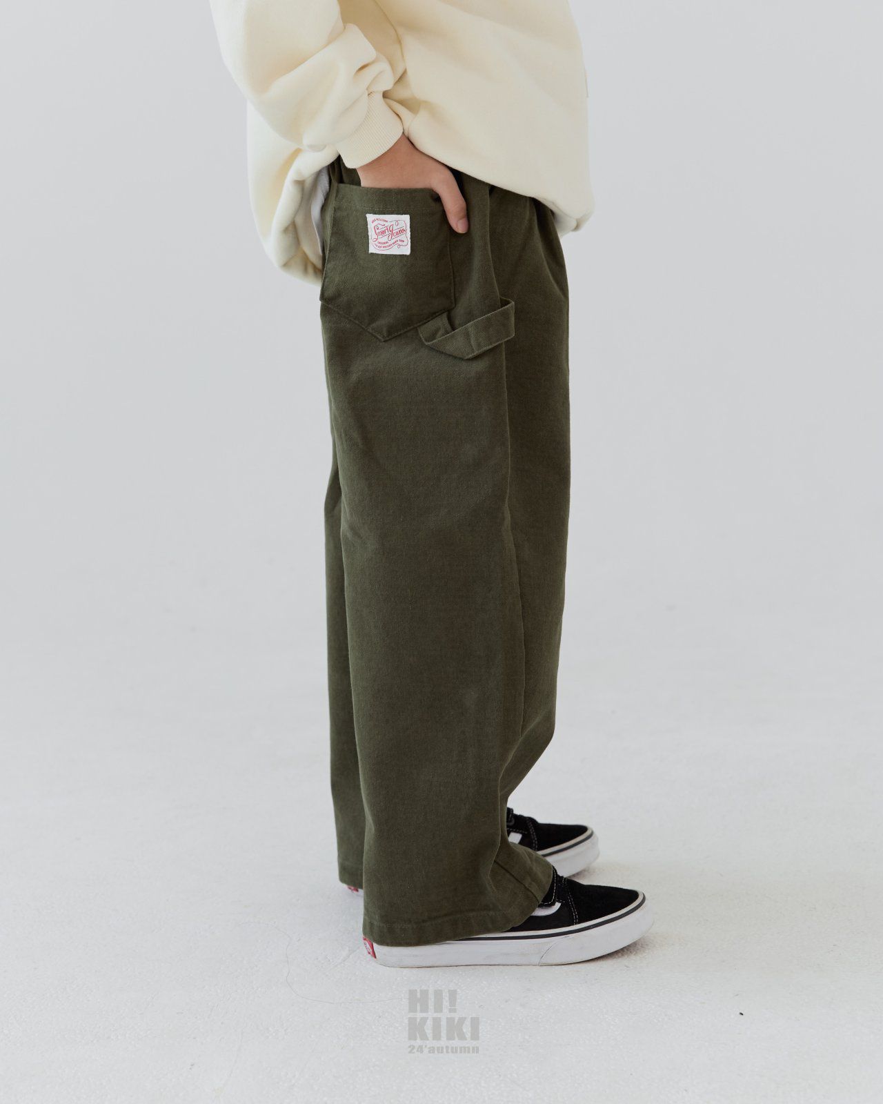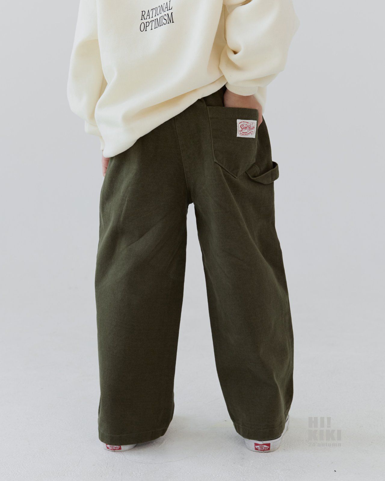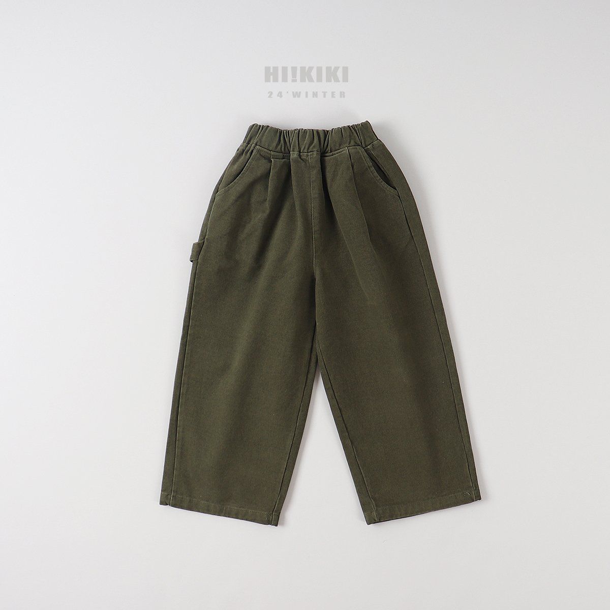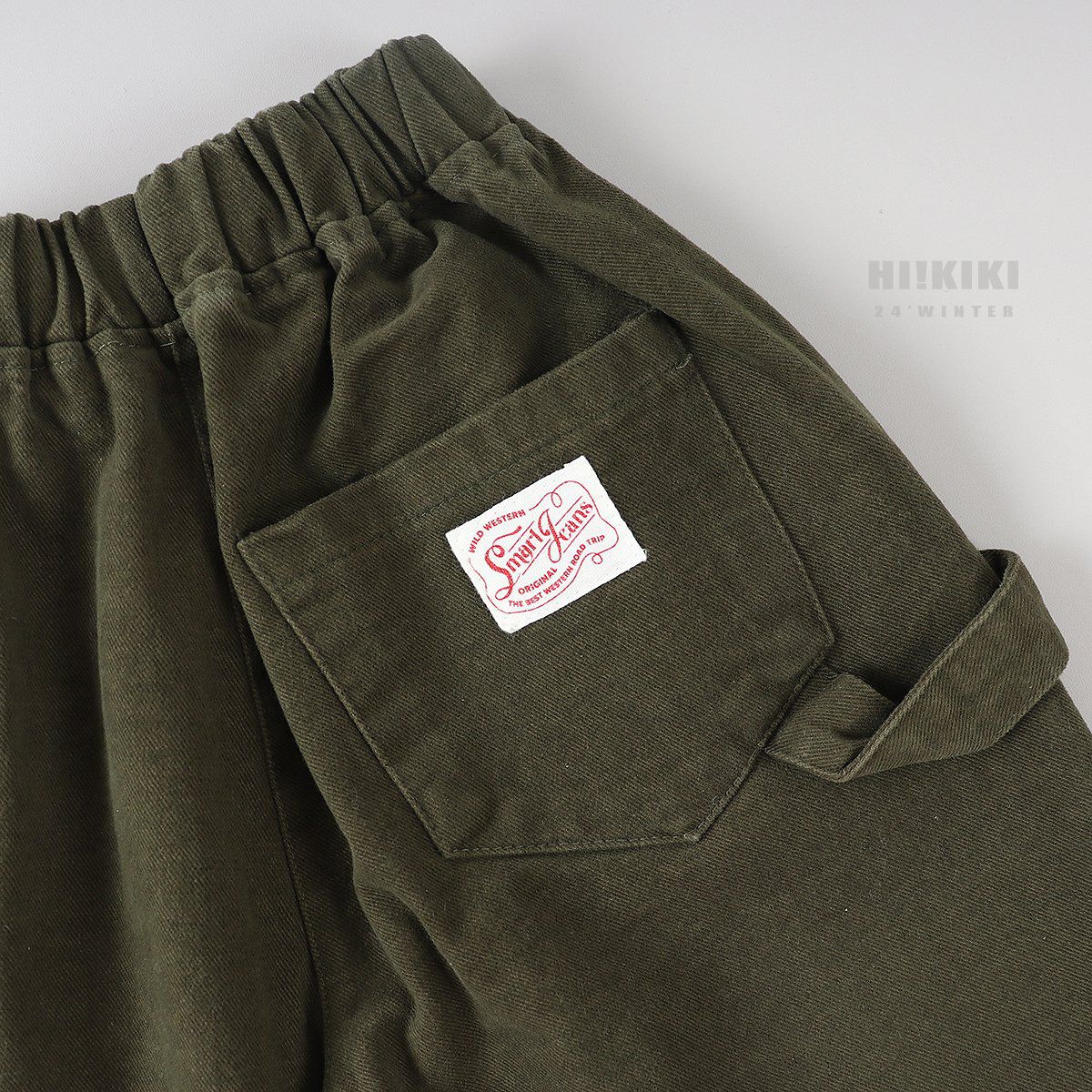 韓國 HIKIKI - 鬆緊腰磨毛感工裝風格長褲-軍綠