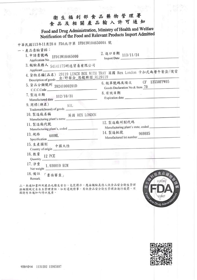 🌺 通過台灣衛生福利部食品藥物管理署輸入許可