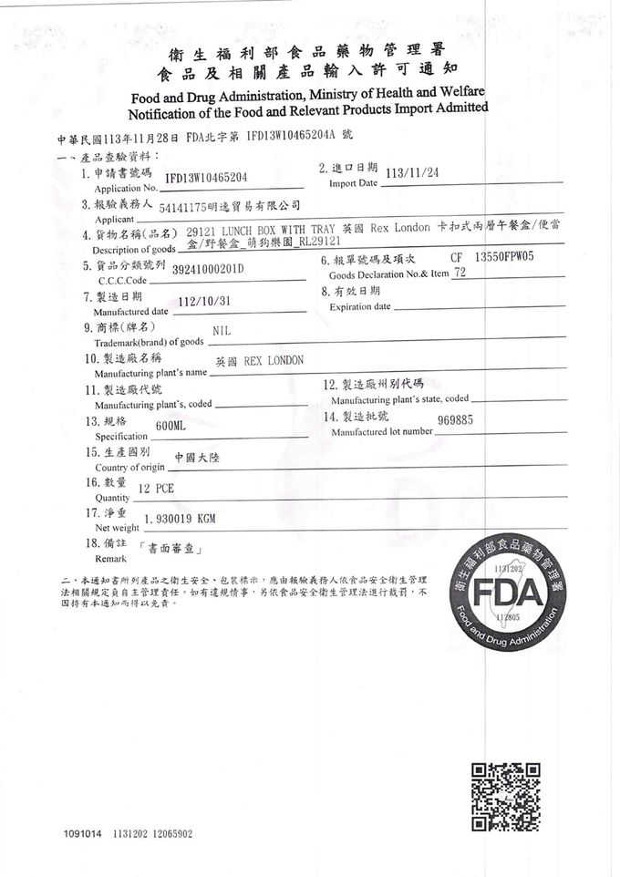 🌺 通過台灣衛生福利部食品藥物管理署輸入許可