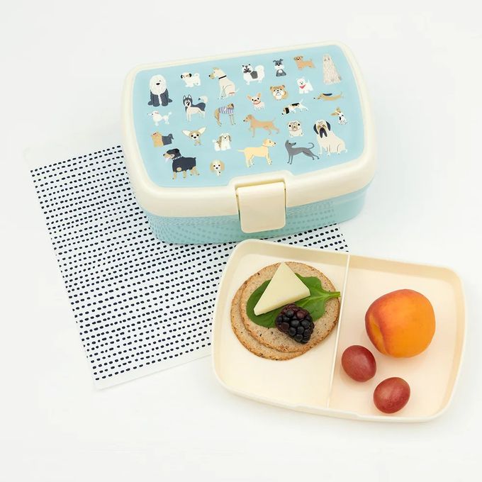 英國 Rex London - 卡扣式兩層午餐盒/便當盒/野餐盒-萌狗樂園
