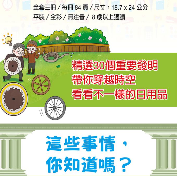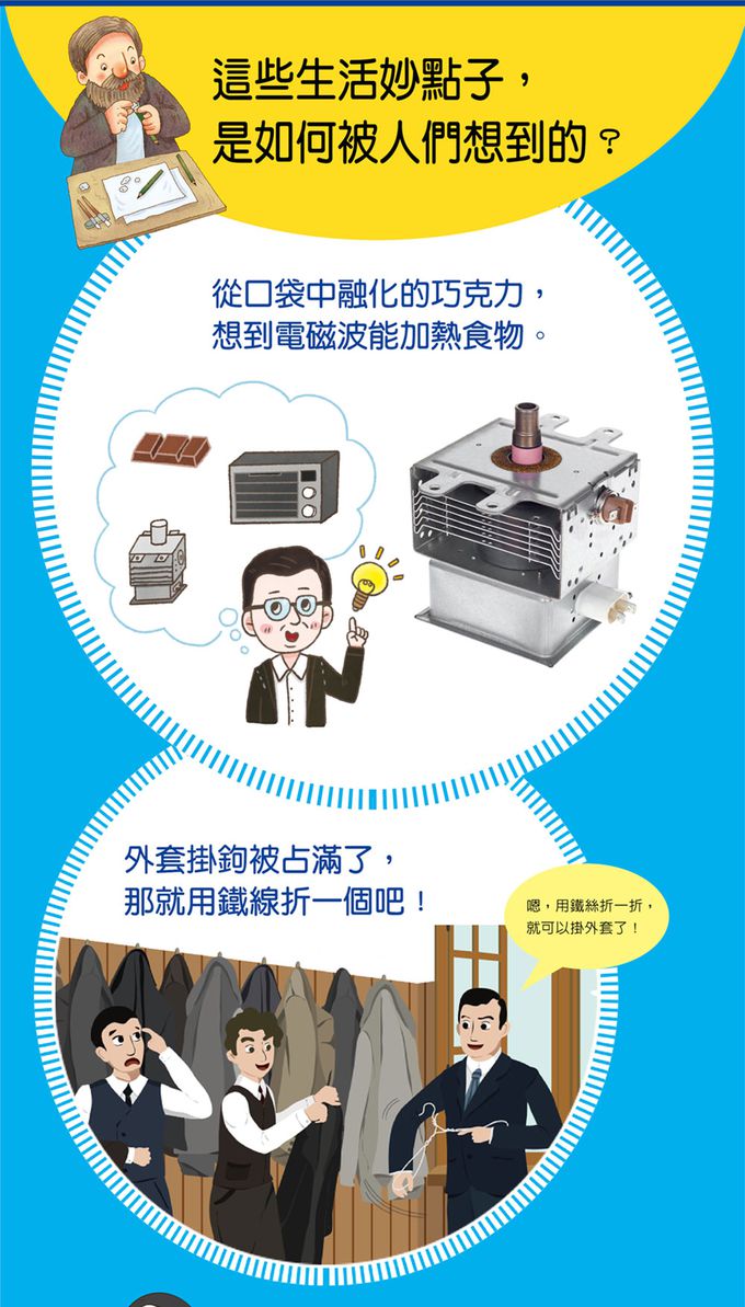 《WOW生活萬物怎麼來》全套三冊,依生活物品分為「上學好夥伴」、「居家小幫手」及「科技百寶箱」三個主題,每本書收錄10個平凡而重要的發明,有趣的內容佐以珍貴歷史圖片、幽默的小插畫,看完它們背後的起源和演變,保證你會驚嘆於古人變通的智慧,也更珍惜現在的擁有。其實,有些發明並不是這麼難,只要留意觀察身邊的事物,發揮巧思和創造力,或許,你也可以替未來的日用品,寫下嶄新的一頁。