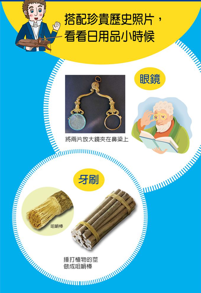 你知道嗎?在牙刷還沒發明以前,人們是用植物的莖、動物的毛來刷牙。而早期的拉鍊有好幾個金屬環,需要手動將線一個個綁在環上。就像每個人有自己的身世,日常生活使用的每樣東西,也都有自己的故事。本書將帶你穿越時空,探尋肥皂、掃把、衛生紙,甚至是抽水馬桶的「成長日記」。