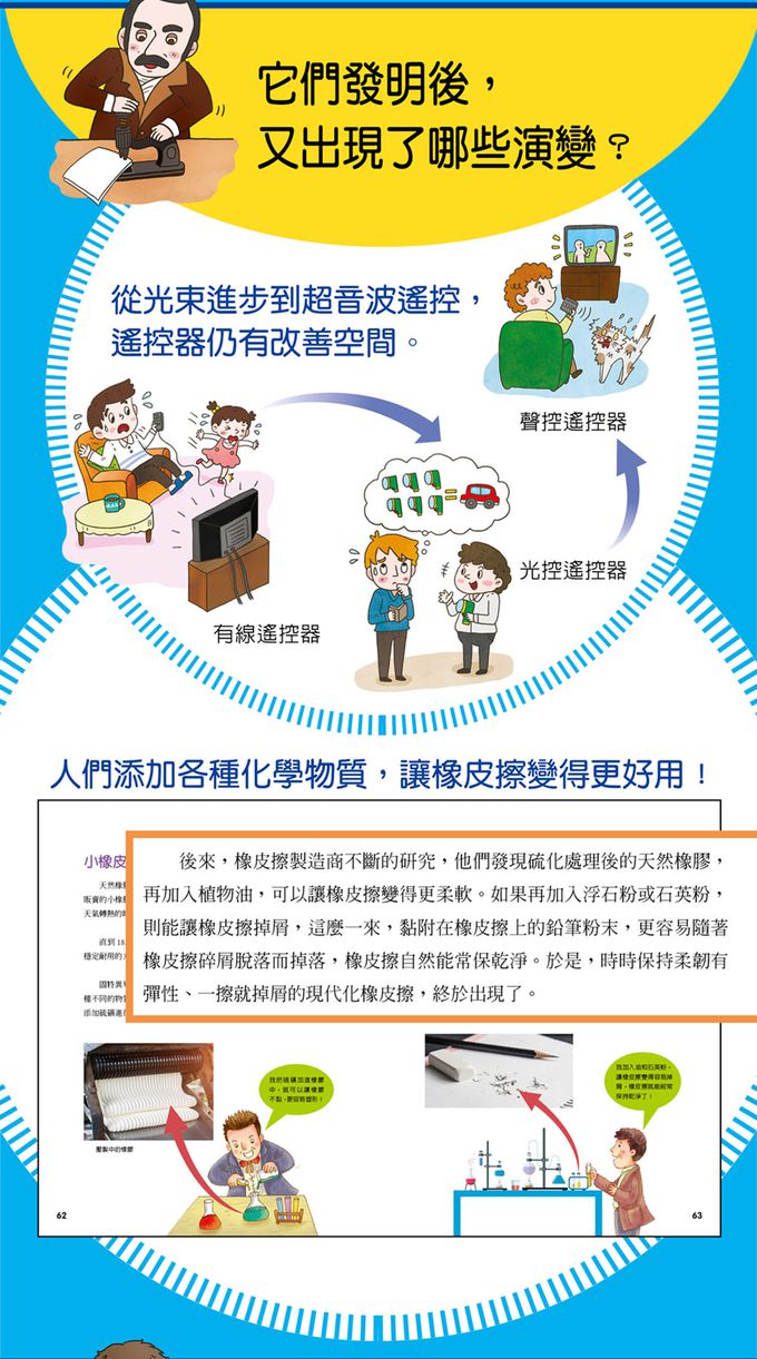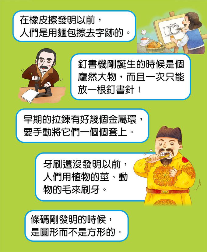 你知道在橡皮擦發明以前,人們是用麵包擦去字跡的嗎?釘書機剛誕生的時候是個龐然大物,而且一次只能放一根釘書針!就像每個人有自己的身世,日常生活使用的每樣東西,也都有自己的故事。本書將帶你穿越時空,發現手錶、釘書機、便利貼等上學用品的「變身」故事。