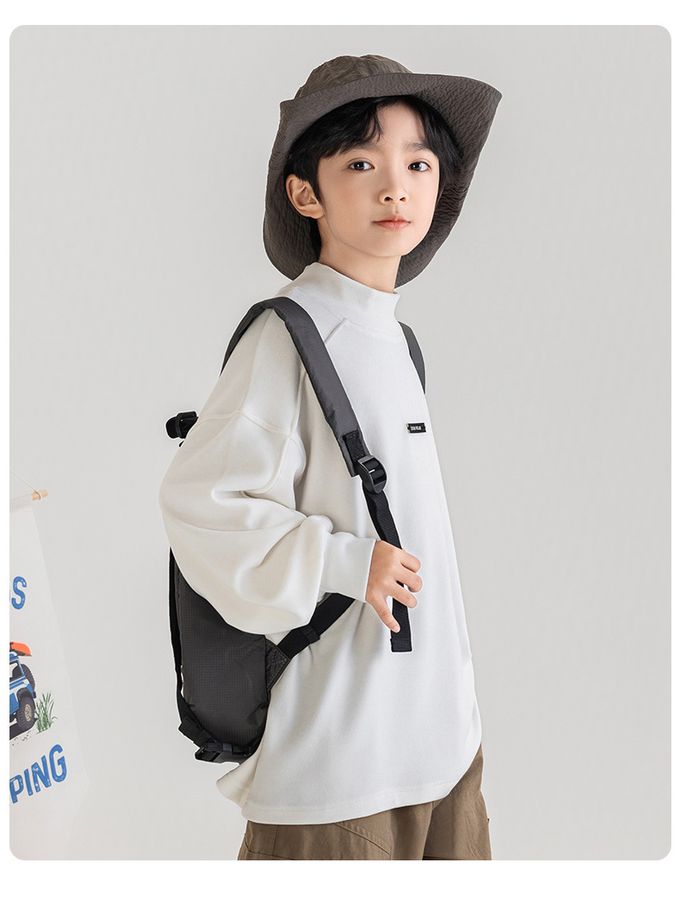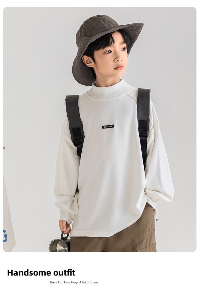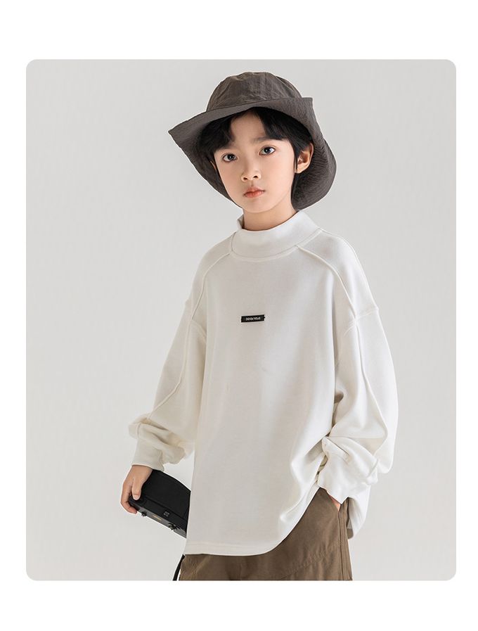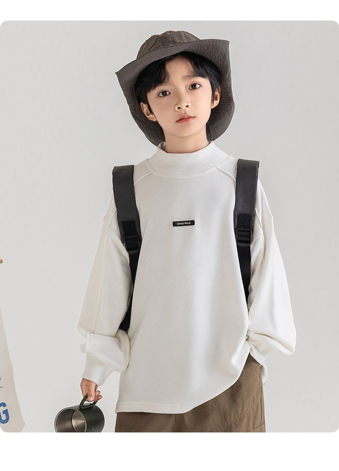 babybody - 德絨半高領蓄熱保暖長袖上衣-胸前小標-白色