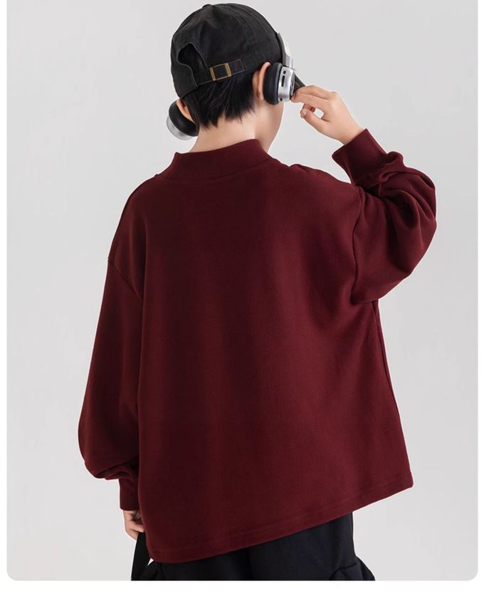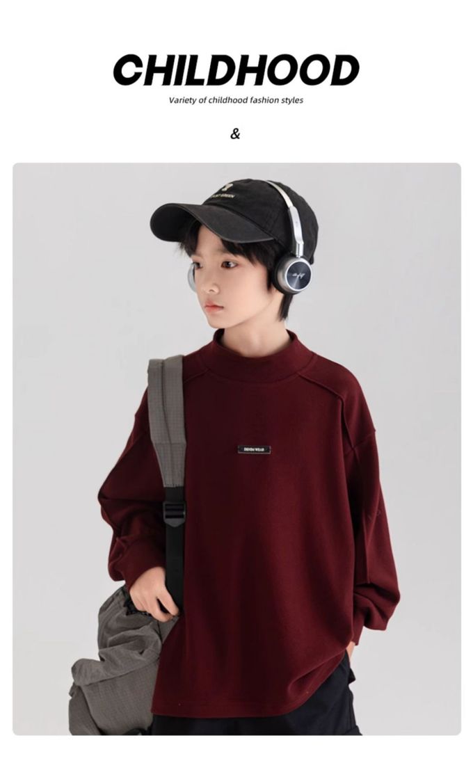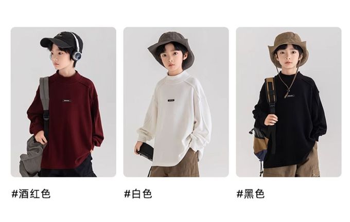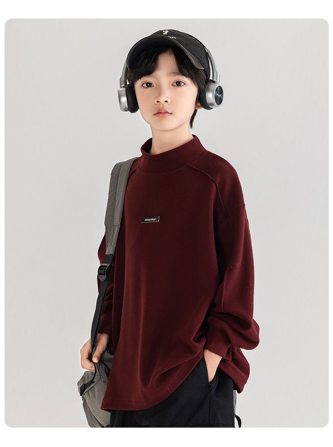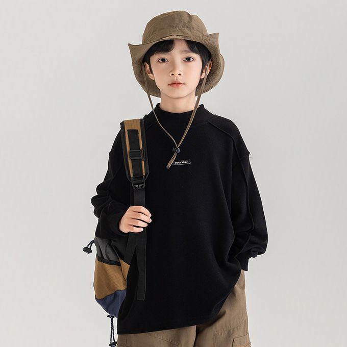 babybody - 德絨半高領蓄熱保暖長袖上衣-領口英文-黑色