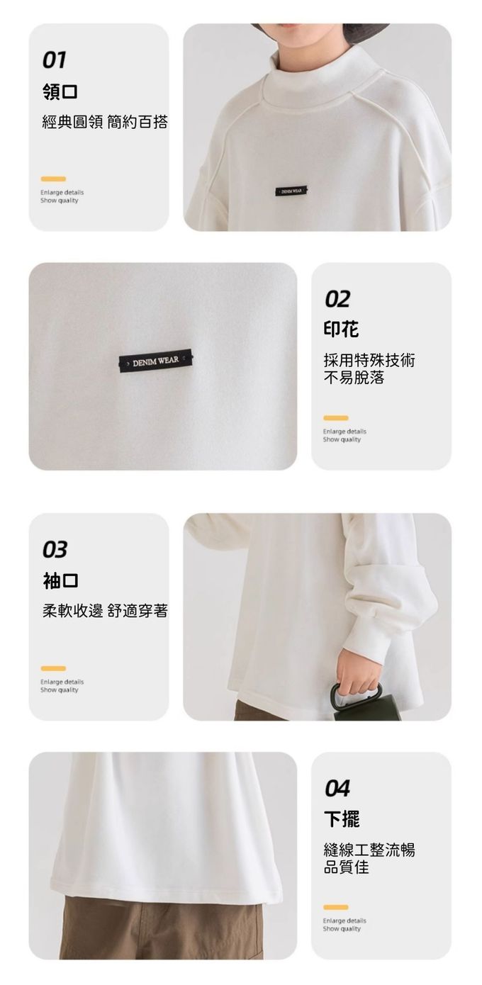 德絨半高領蓄熱保暖長袖上衣-胸前小標-白色