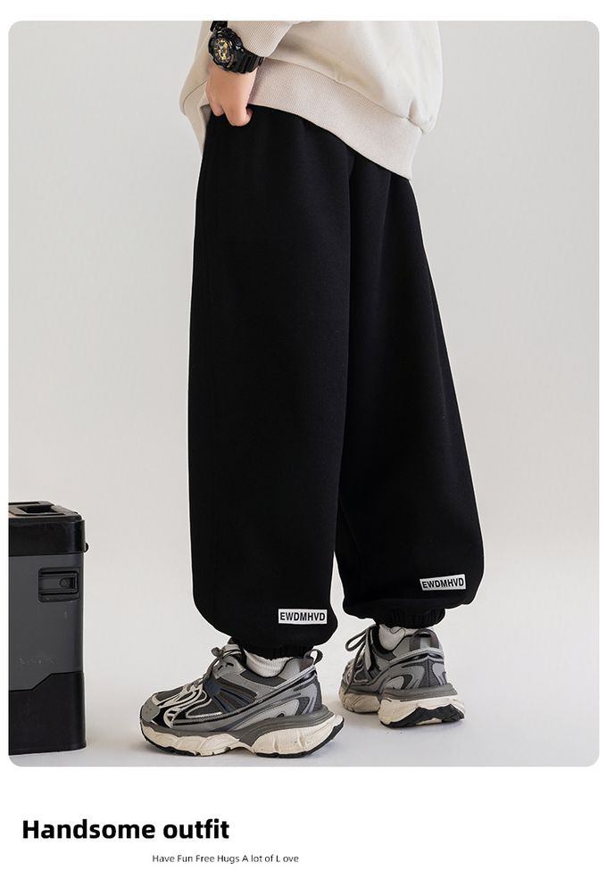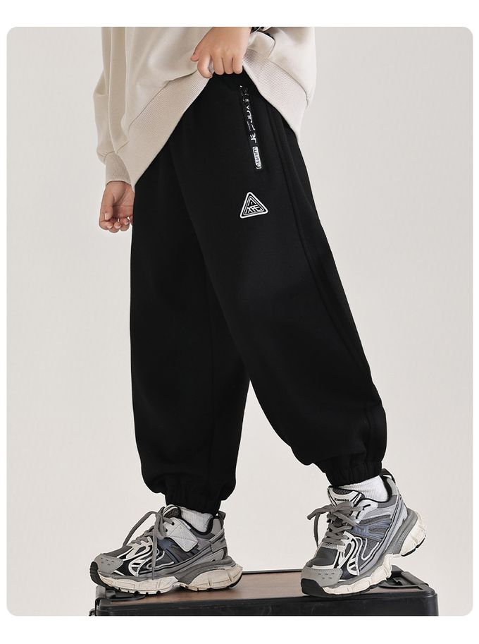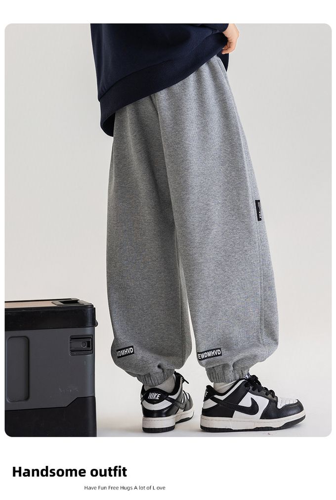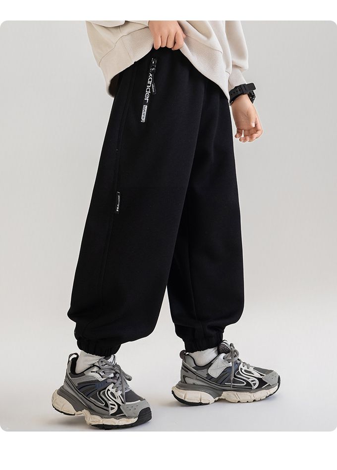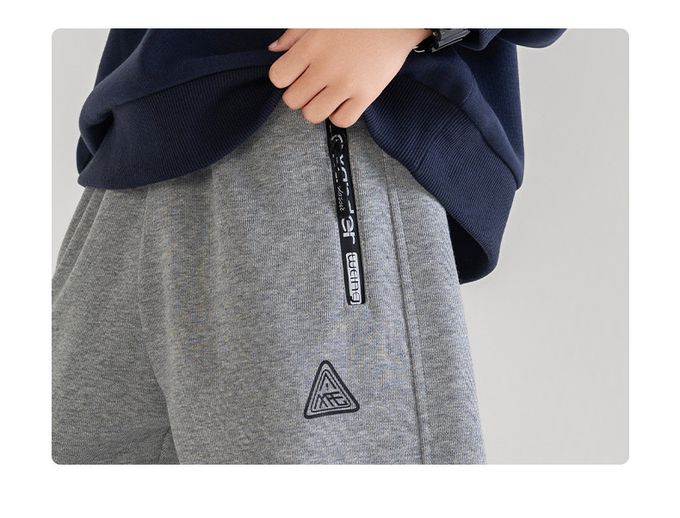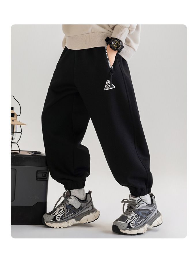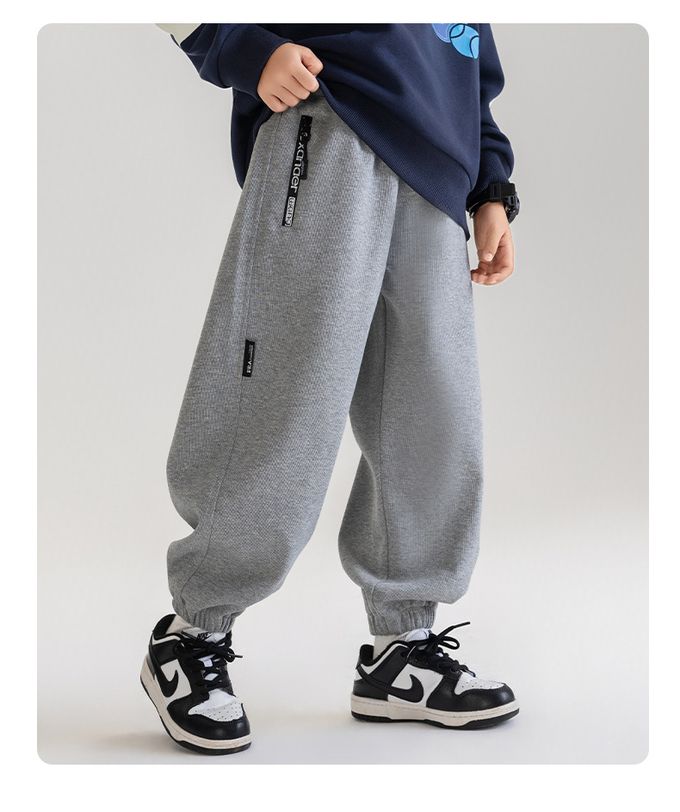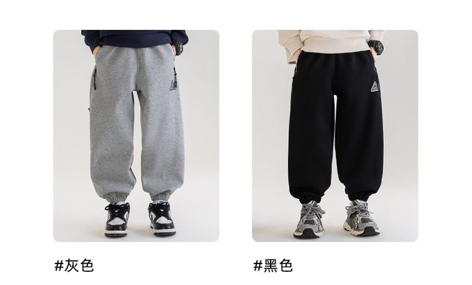 腰鬆緊休閒運動束口長褲-拉鍊口袋-灰色