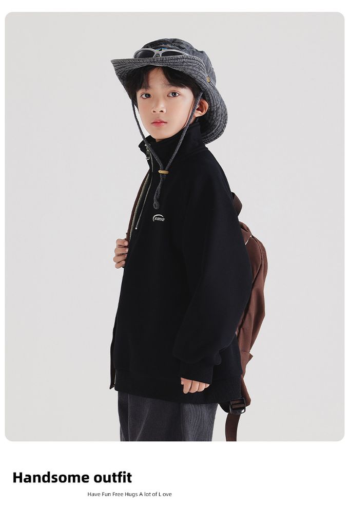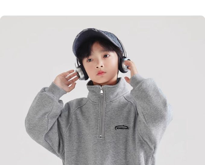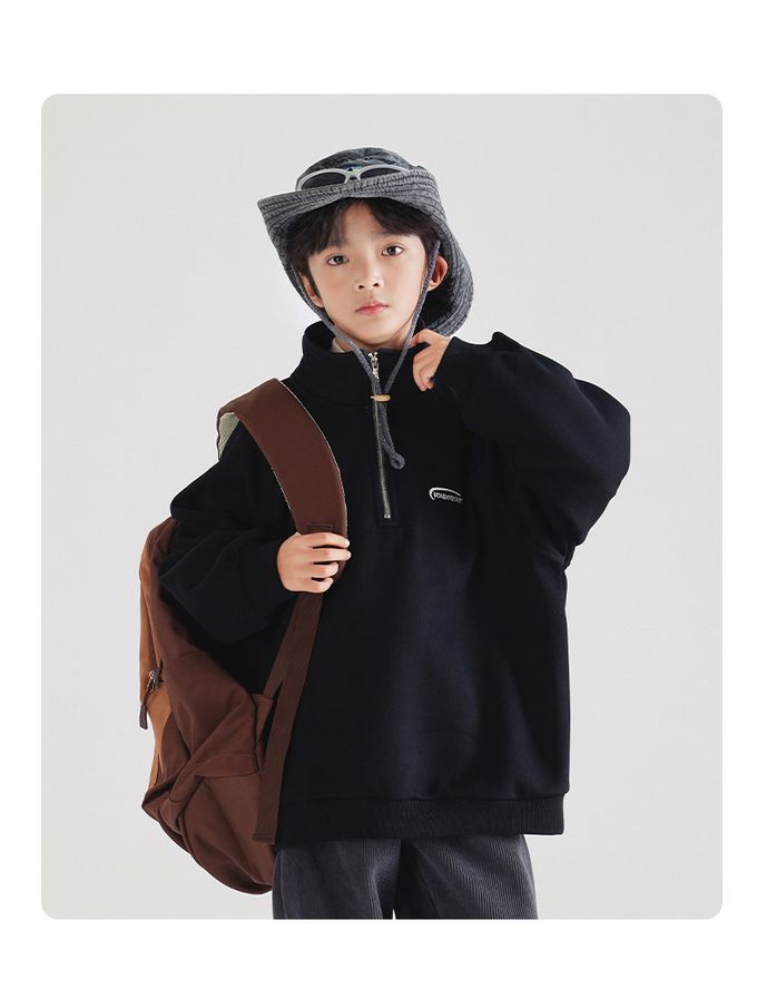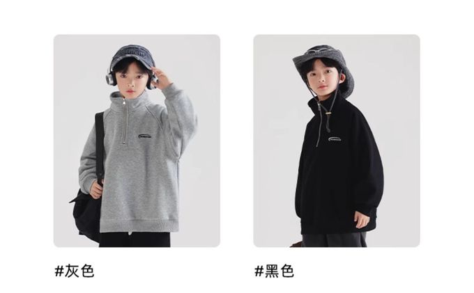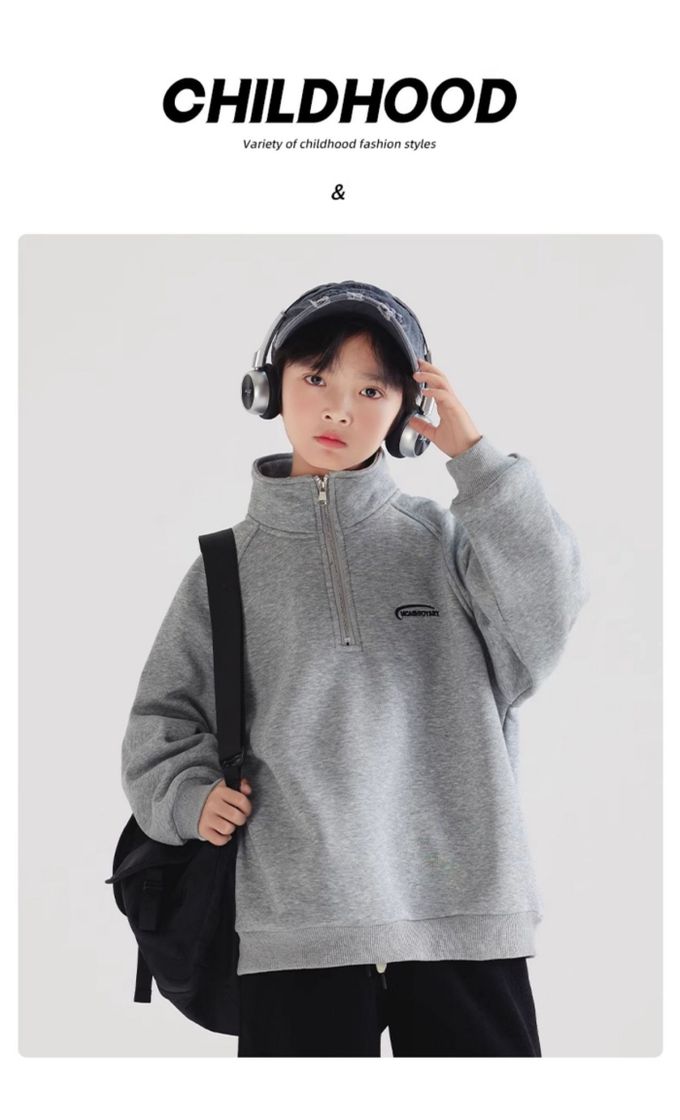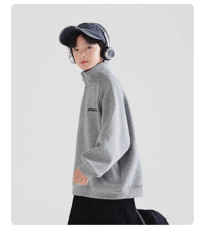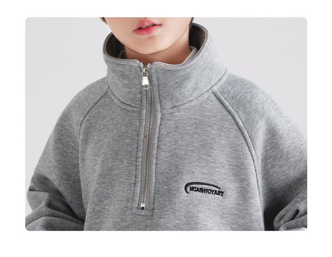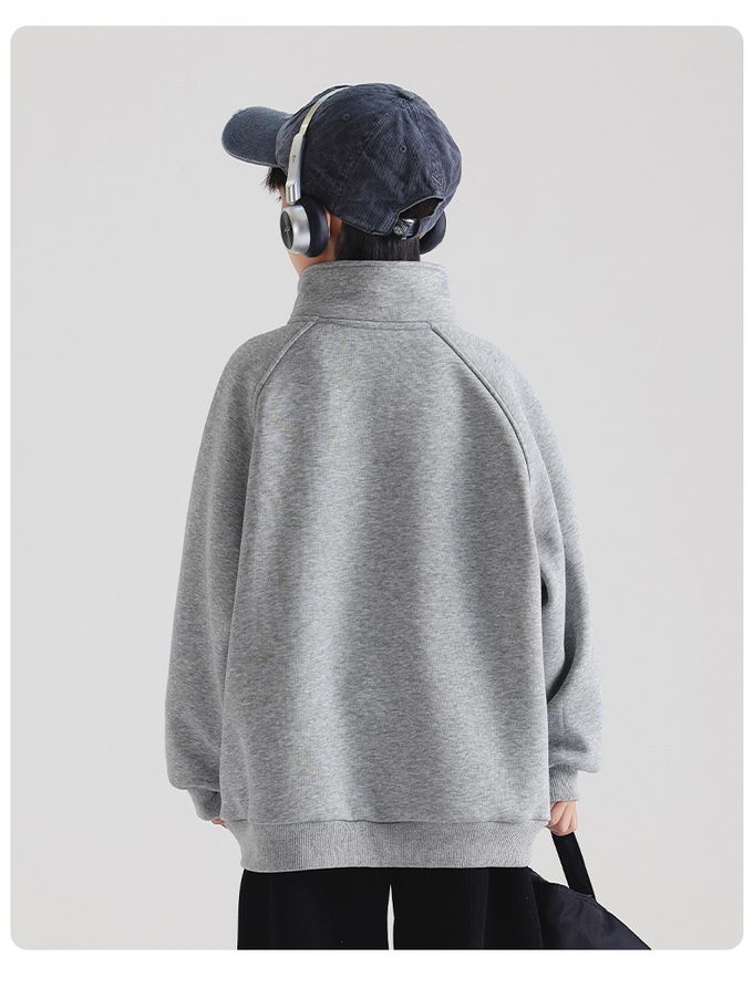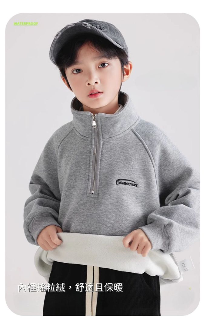 babybody - 半高領休閒半開襟長袖上衣(加絨)-灰色