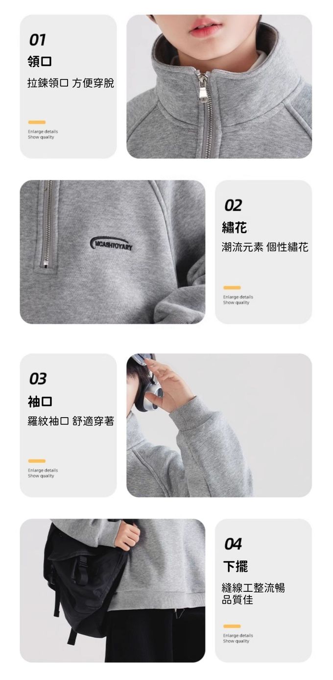 品名:半高領休閒半開襟長袖上衣(加絨)
