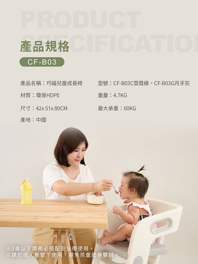 品名:兒童成長椅 CF-B03 -兒童椅/餐椅/升降椅/學習椅/兩檔可調