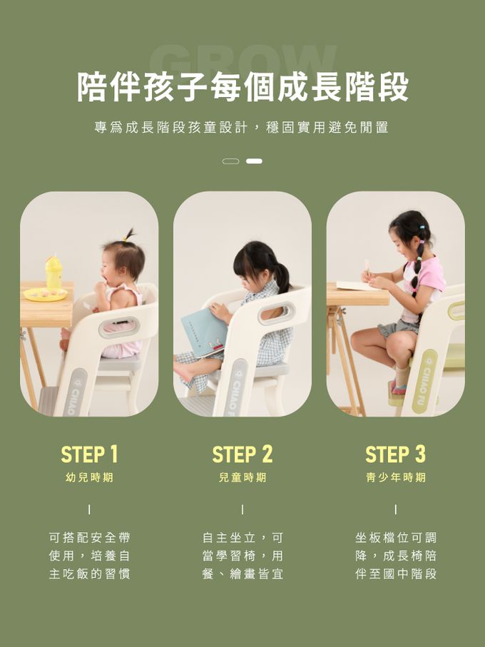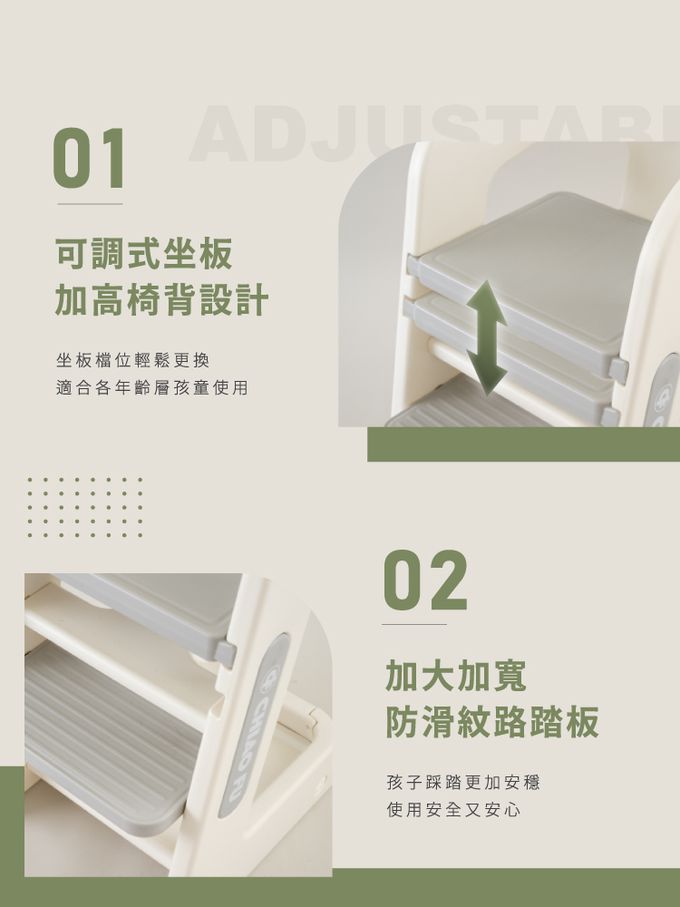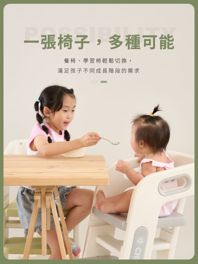 兒童成長椅 CF-B03 -兒童椅/餐椅/升降椅/學習椅/兩檔可調-豆蔻綠,月牙灰