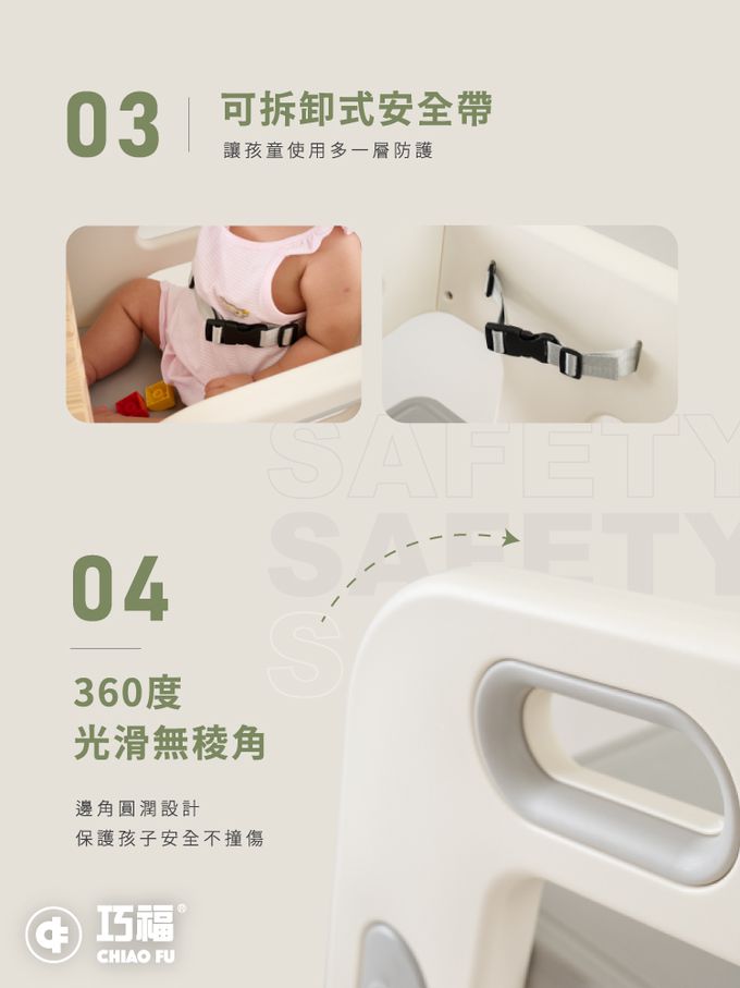 注意事項:※3歲以下請務必搭配安全帶使用。 ★本產品由成人組裝,請確實鎖定所有零組件,確認安裝穩固後,始能給孩童使用。 ★使用中需看管孩童是否起身攀越,以防使用時發生危險。 因產品屬於寶寶/孩童衛生品關係(注意!猶豫期非試用期),辦理退貨商品必須是全新狀態且包裝完整,否則將會影響退貨權限。