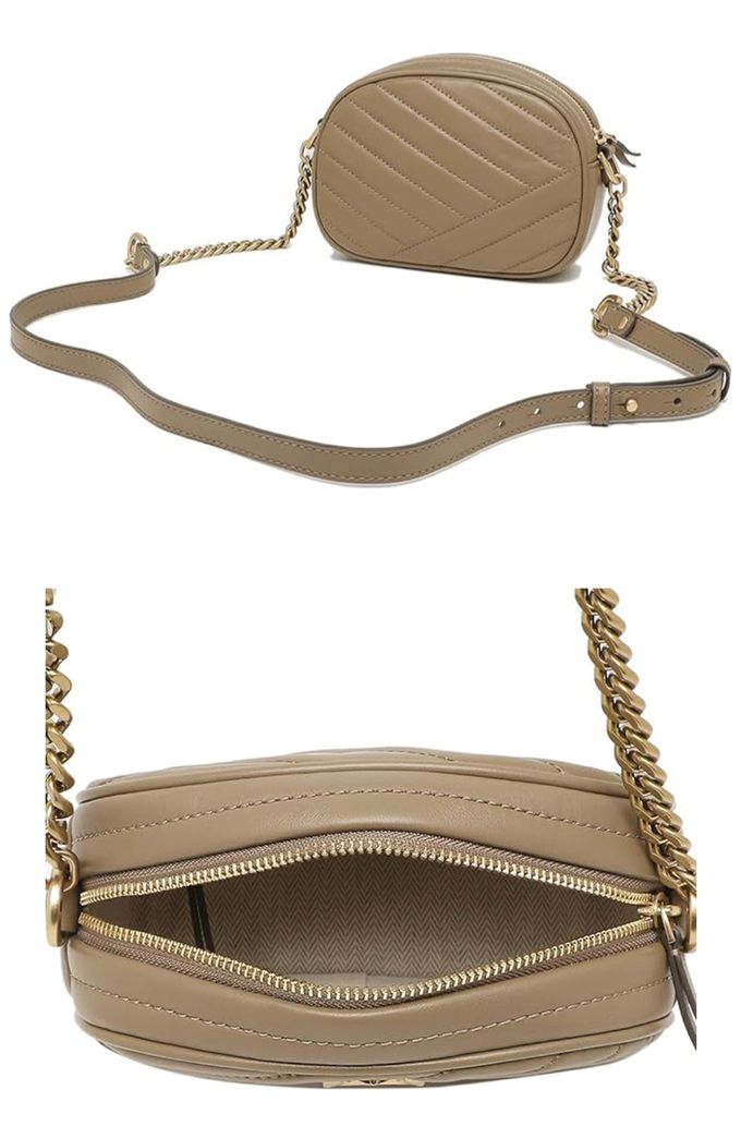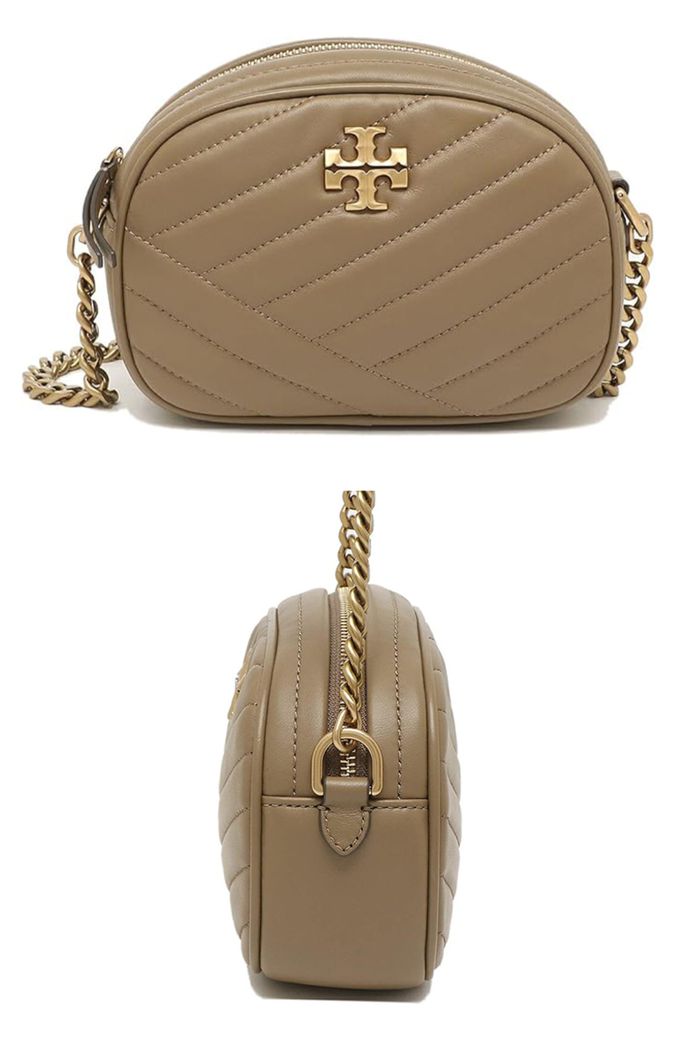 素面斜紋皮革鍊帶相機包 (卡其)
