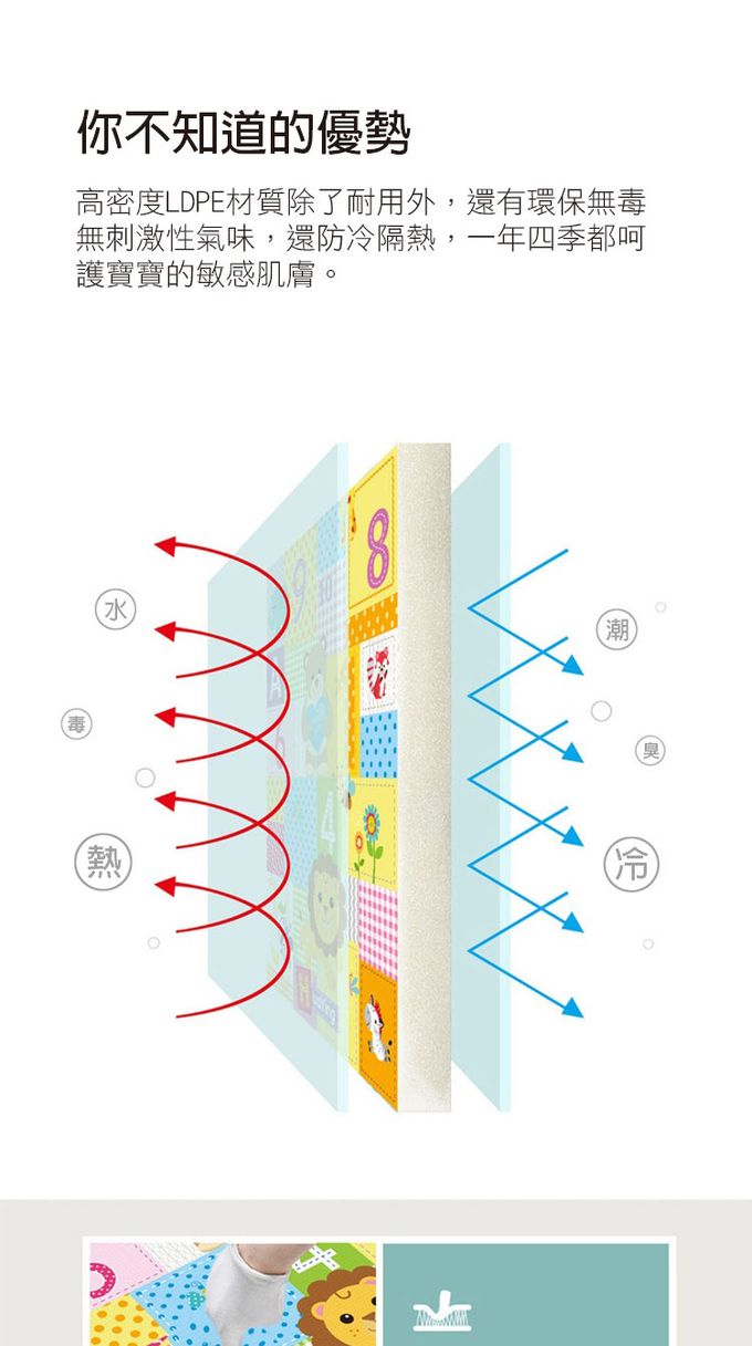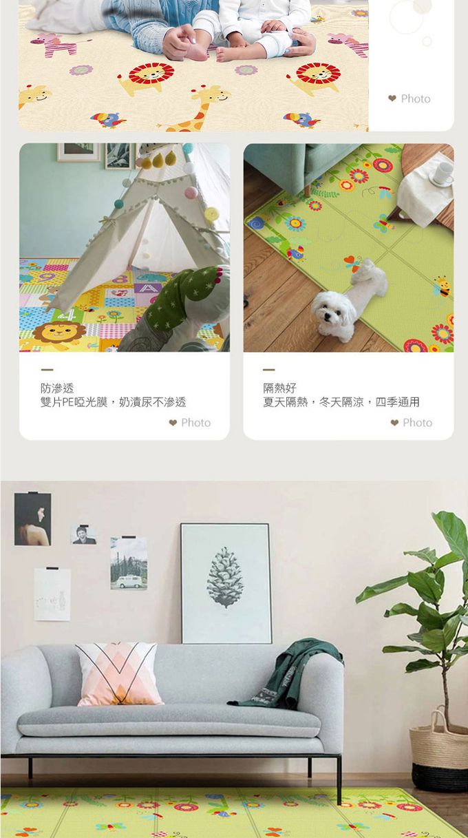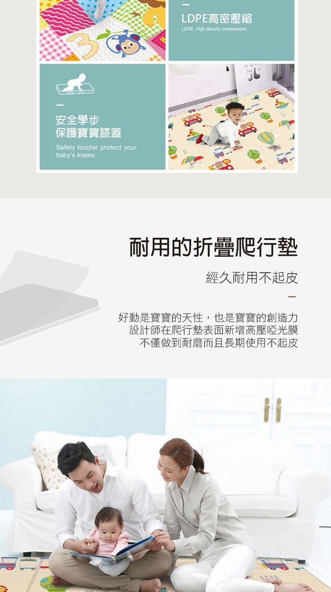 2.大尺寸多功能地墊,可使用於午睡、遊戲、爬墊、防撞、一般地墊使用。