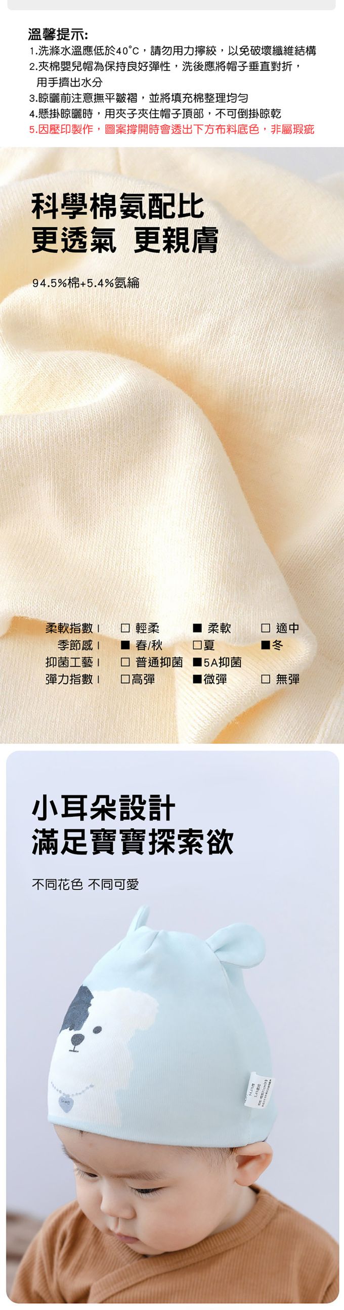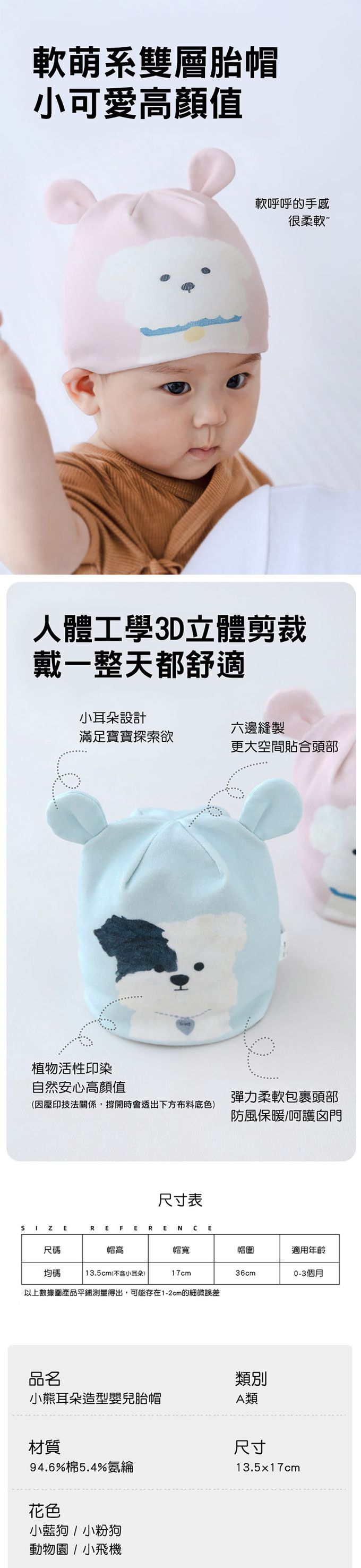 2.親膚材質舒適,保護寶寶的頭部避免風吹。