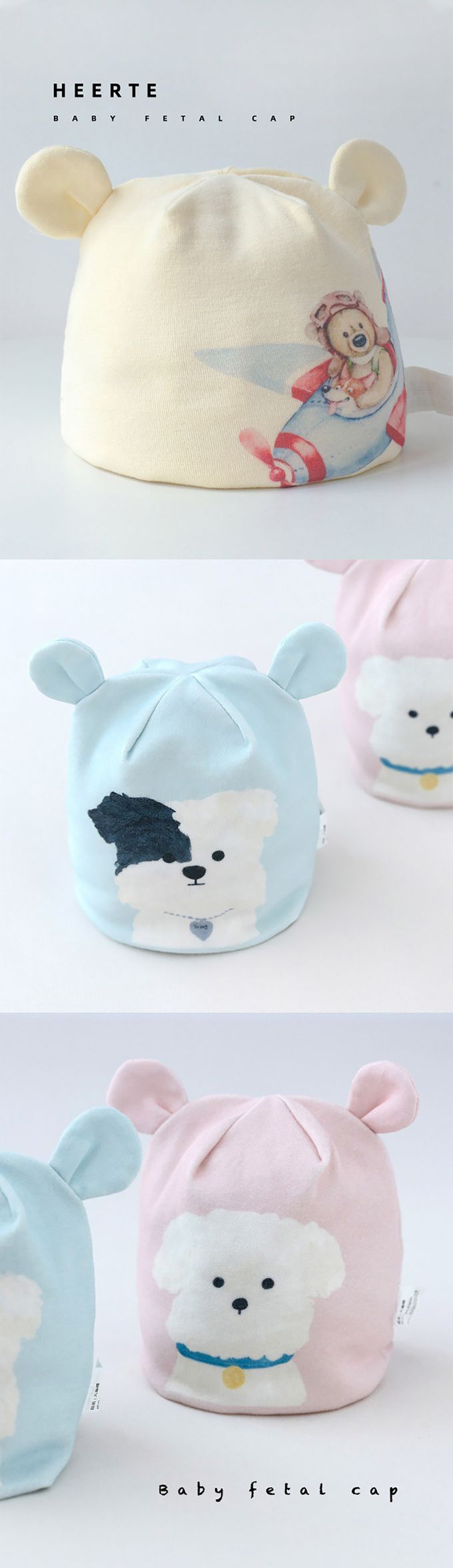 1.可愛外出寶寶胎帽,小熊耳朵滿版動物造型。
