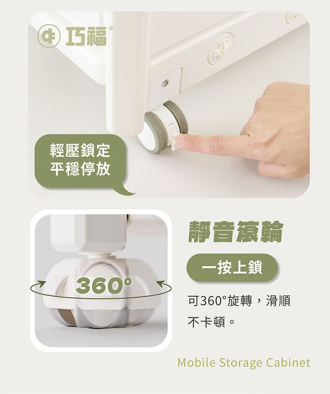 可上鎖靜音滾輪,輕鬆移動,隨心所欲