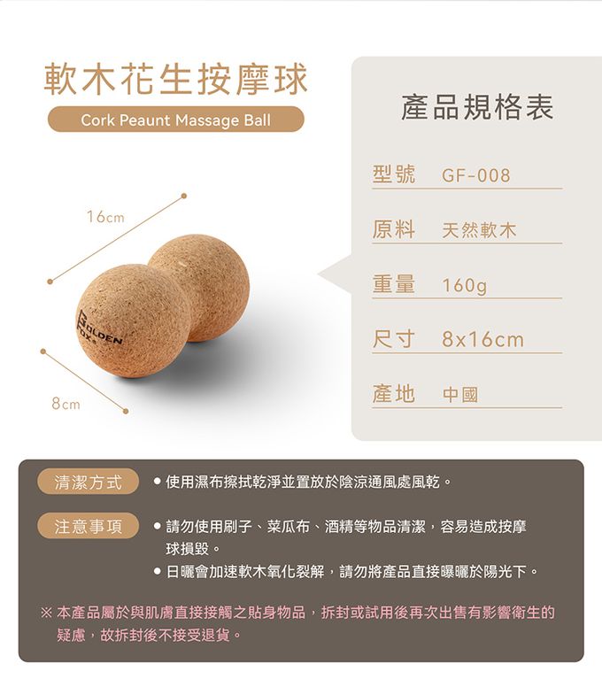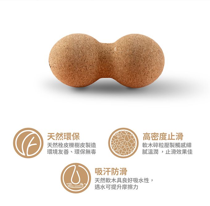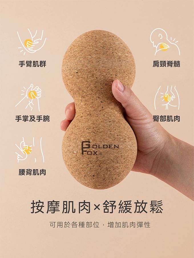 定期使用軟木花生按摩球,能有效增加肌肉彈性,舒緩肌肉酸痛,降低運動傷害風險。