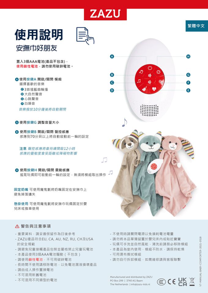 • 清潔玩偶請先拆除電子零件,僅清洗玩偶部分。