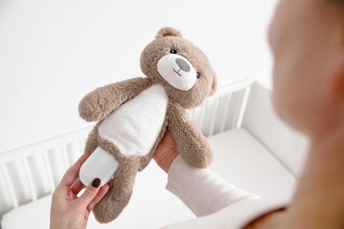 在夜晚的就寢時間,睏寶好朋友的肚子會發出舒緩的紅光,並在10分鐘後自動關閉,燈光亮度可依個人喜好調整。