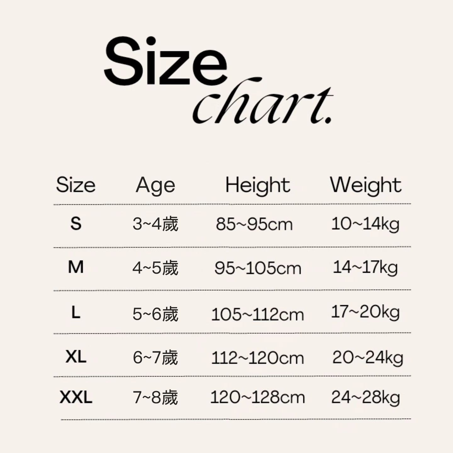 1. 尺寸表單位皆為公分(cm),實際尺寸會因布料彈性、水洗、測量起迄點等因素略有誤差。建議參考孩子平時穿著衣物尺寸進行選購。2. 建議以30度以下冷水,單獨手洗,以免造成移染或掉色。3. 如需機洗,請務必將衣服翻面放入洗衣網、再放洗衣機,以免刮損圖樣。(若有標註不可機洗或乾洗,請勿機洗、乾洗)4. 若含牛仔布、有色布料容易互相染色,請分開或單獨洗滌,以免相互移染。請使用中性洗劑。浸泡時間不宜過長。5. 請勿使用漂白劑、螢光增白劑及衣物柔軟劑,以免破壞布料或導致掉色。6. 洗滌後立刻晾乾,切勿使用烘衣機。過分烘乾可能會破壞織物纖維、導致衣物收縮。7. 如有熨燙需求,請低溫熨燙。8. 每件商品於拍攝時均力求忠實呈現,但因每台電腦、手機或平板等設備之螢幕亮度、解析度不同,可能會有些許色差,謝謝媽咪爸比們的體諒。9. 提醒您,七天猶豫期並非七天試用期呦!商品需保持全新、完整包裝始可申請退換貨,造成不便敬請見諒。10. 預購為海外同步代購,如遇缺貨會儘速通知、協助取消訂單/退款等事宜。